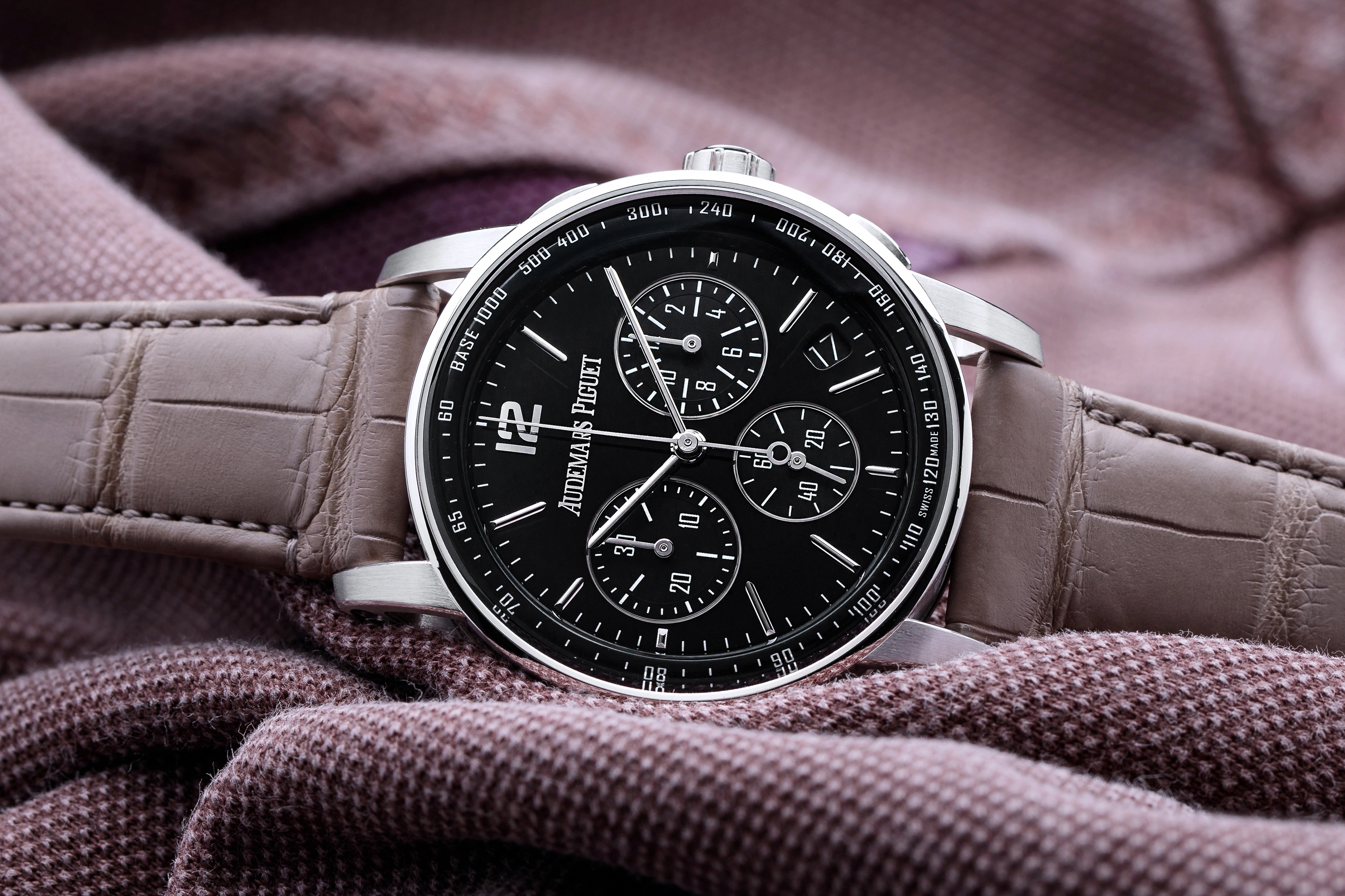 Adding a complication to the time-only variant, the Code 11.59 chronograph tucks three registers into a beautiful guilloché, fumé, or solid dial, all while preserving the fundamental design language of the collection. The Code 11.59 Chrono was also a milestone with the launch of the caliber 4401. It provides an in-house self-winding flyback chronograph movement with a quick jumping date mechanism, no small feat to accomplish.
