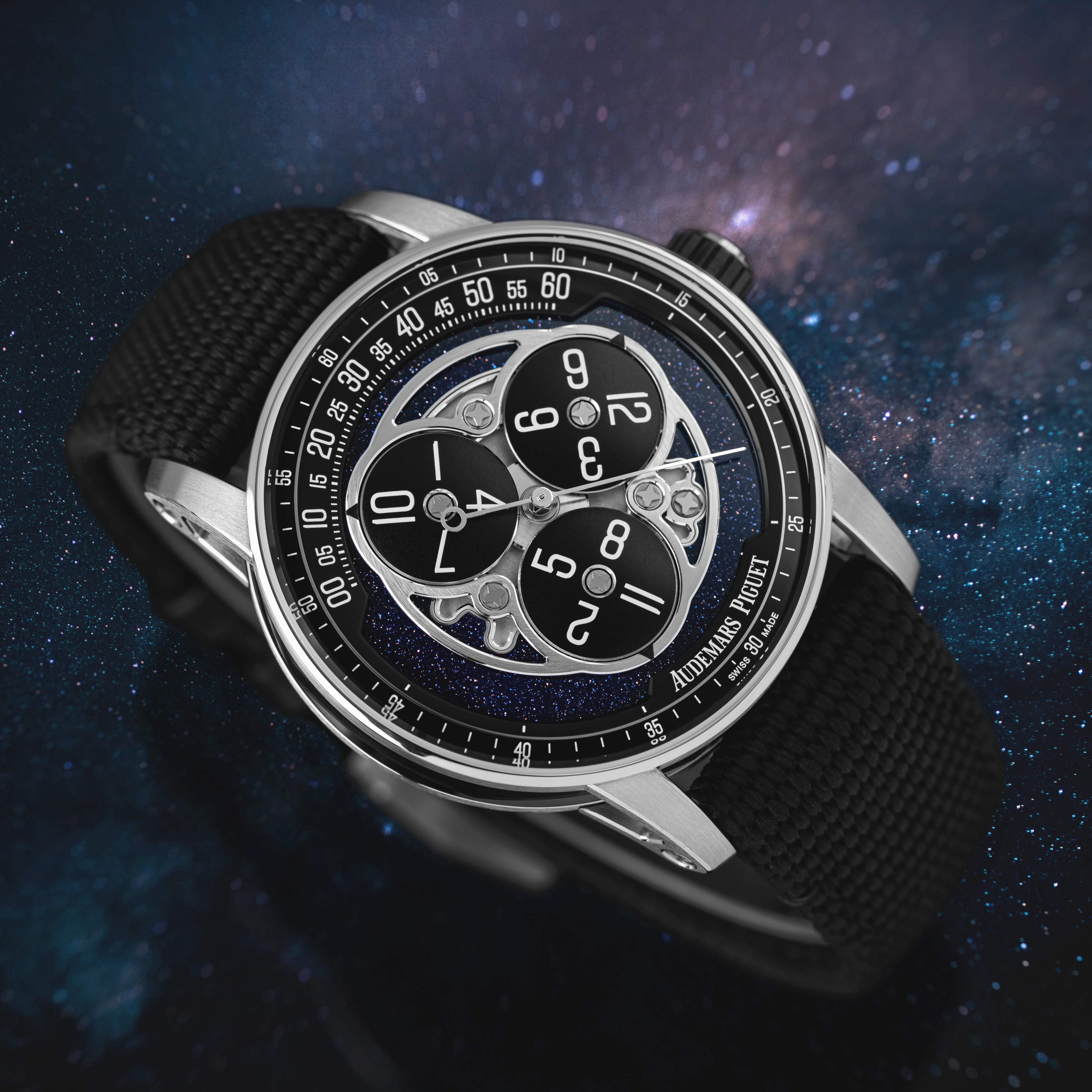 The Star Wheel is an iconic demonstration of Audemars Piguet’s interpretation of a wandering hours complication, which was first introduced in 1991. Reimagining the complication for new audiences within the Code 11.59 lineup has breathed new life into the Star Wheel. Current models feature exciting aventurine accents on the dial and exploit a unique timekeeping display that complements the modernist stance of the collection overall.