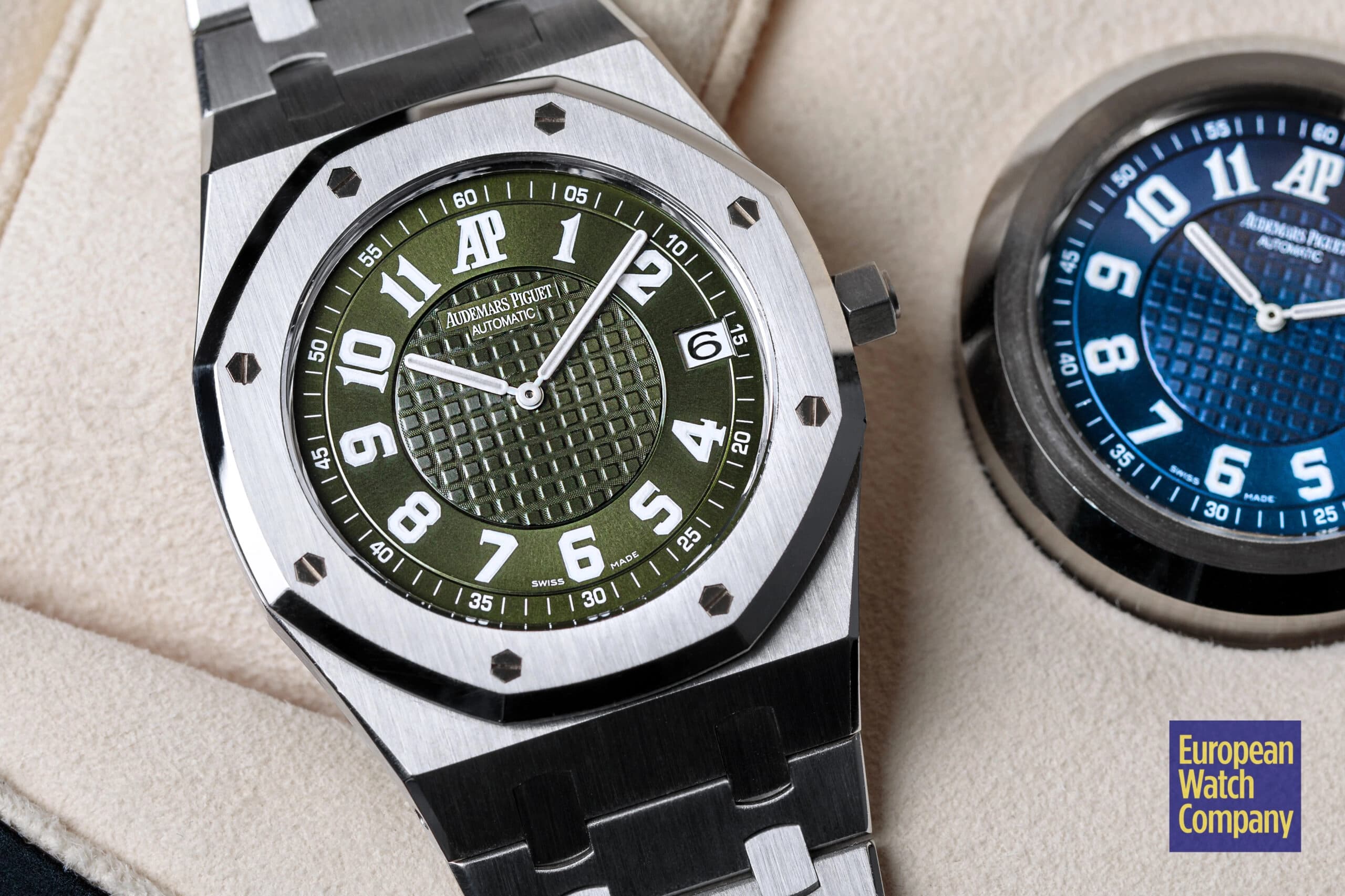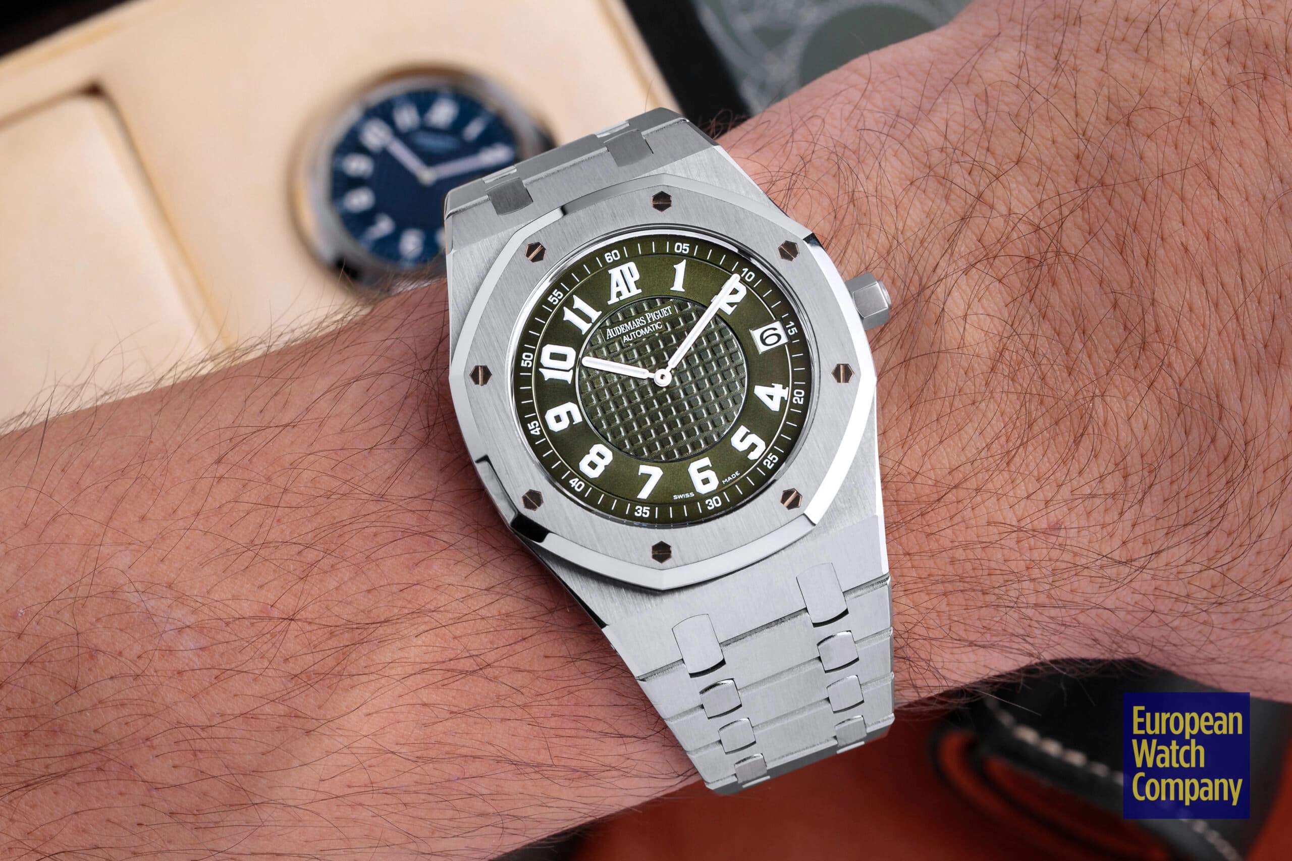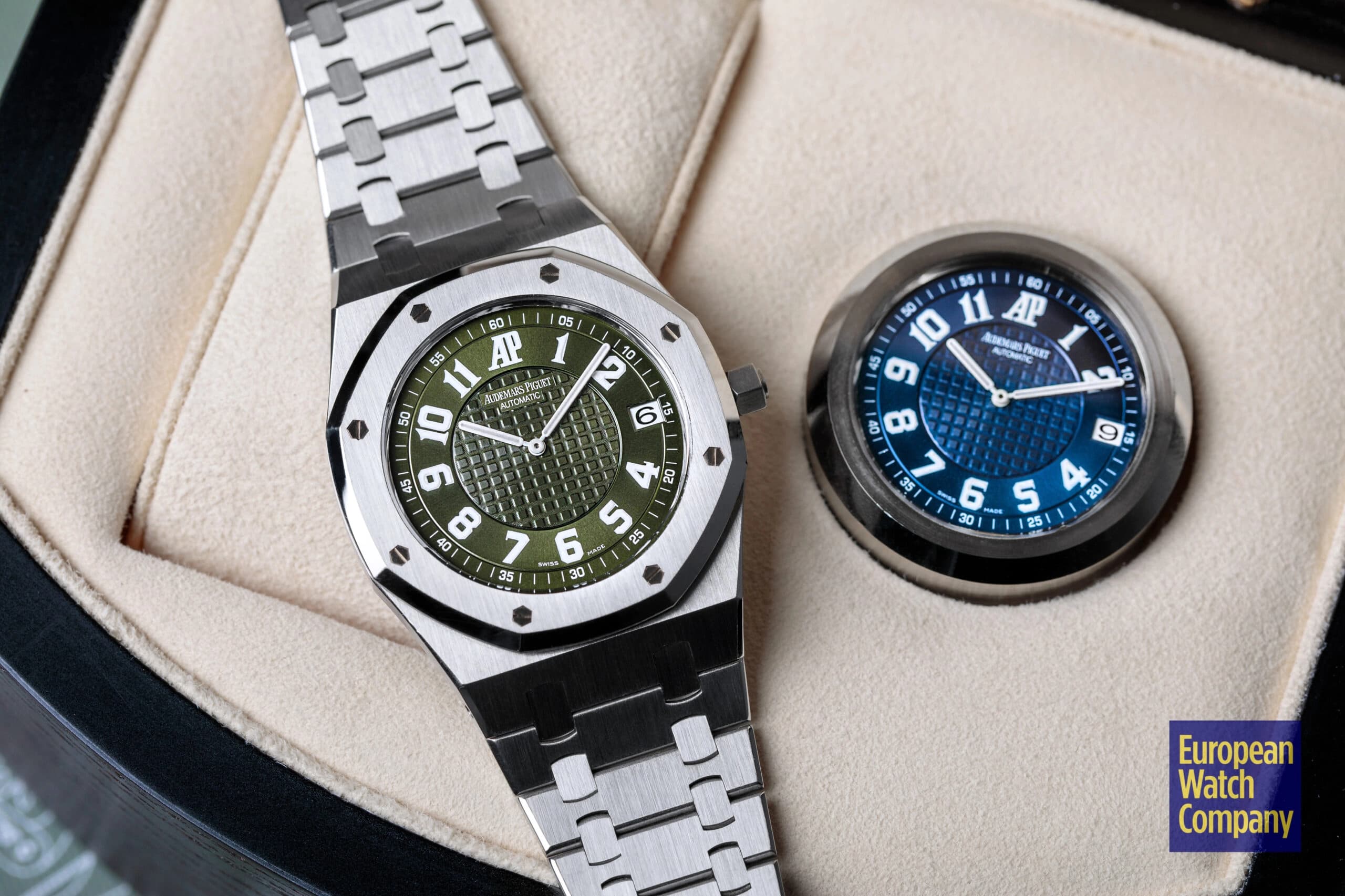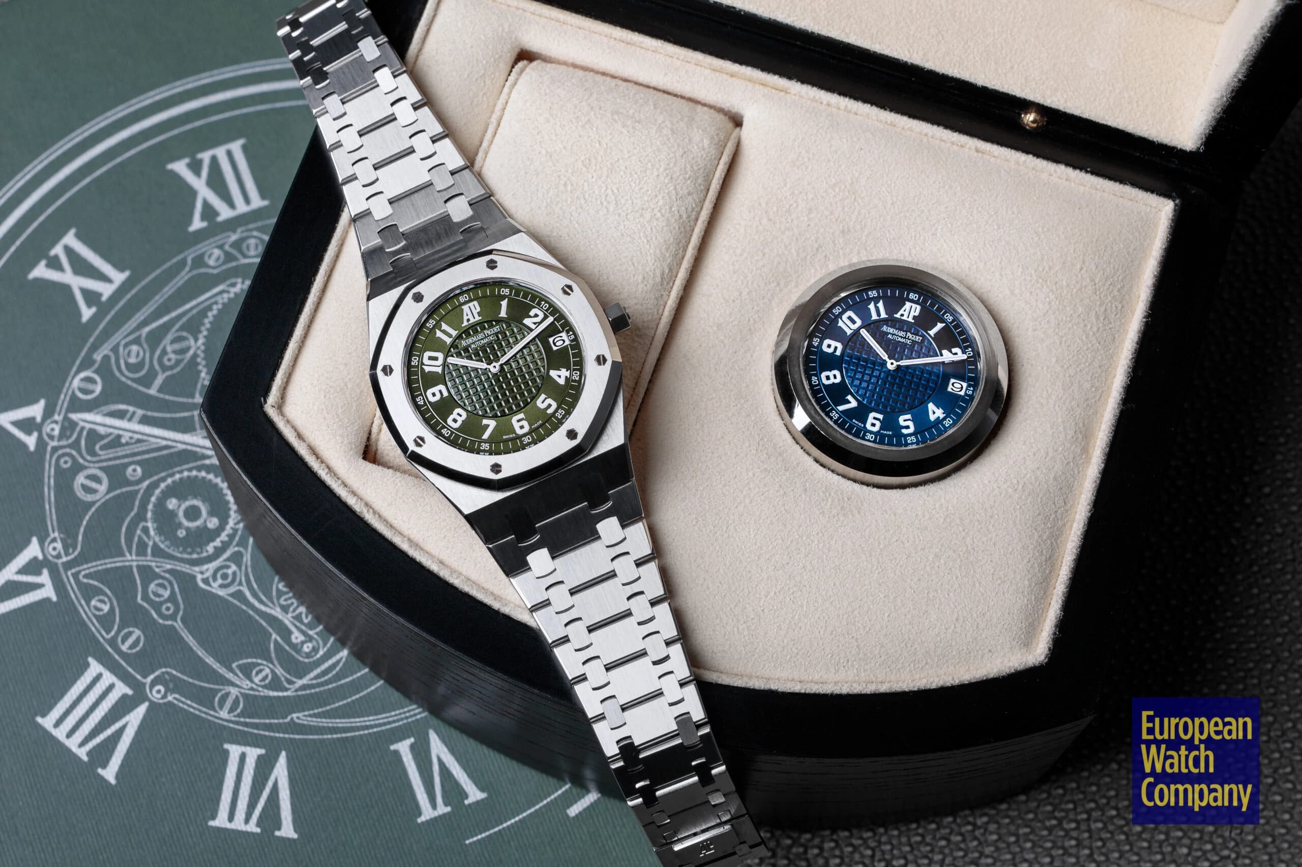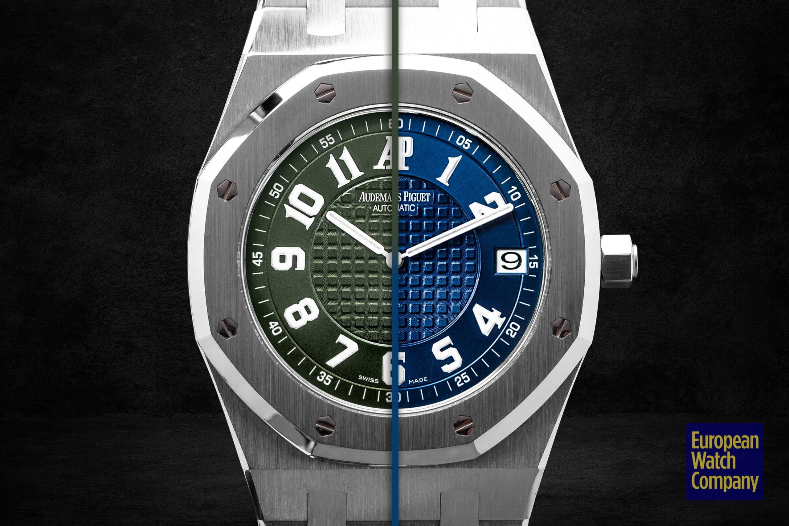 You'll also notice that the layout of the dial is very different from a standard Royal Oak. It's sort of like a hybrid between Military style dialed Royal Oaks and the standard production model but with a minute track thrown around the border for good measure. Between the two, I definitely prefer the blue but having the option to switch it to green—though not on the fly—is an awesome bonus feature that you almost never see.