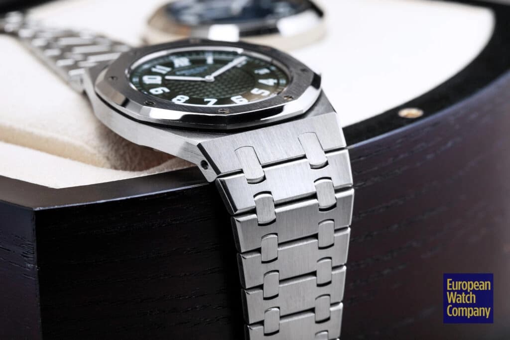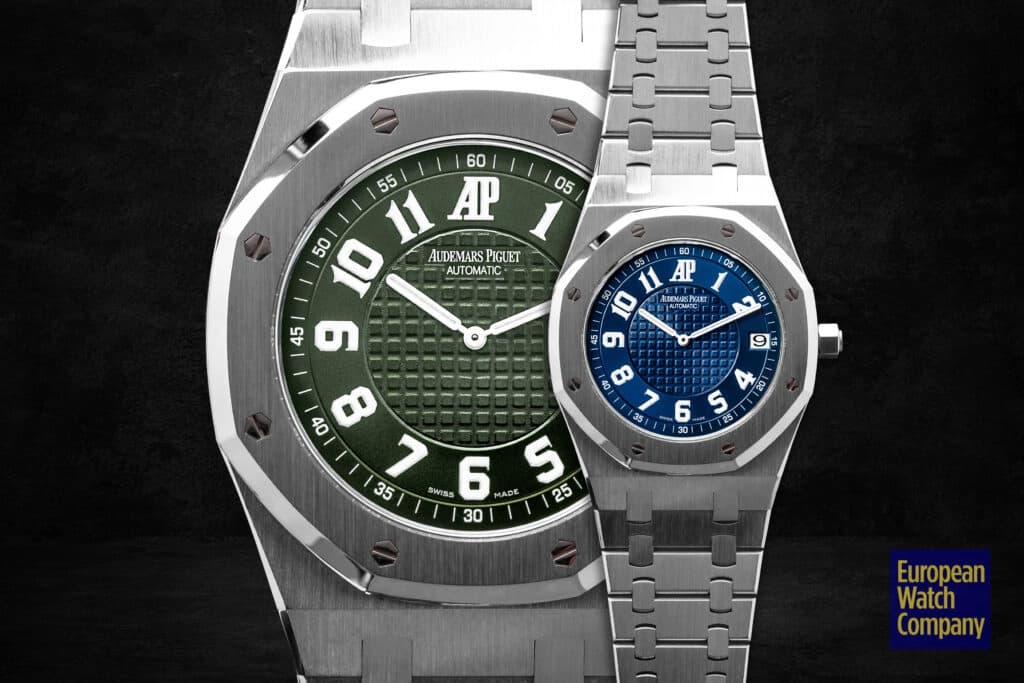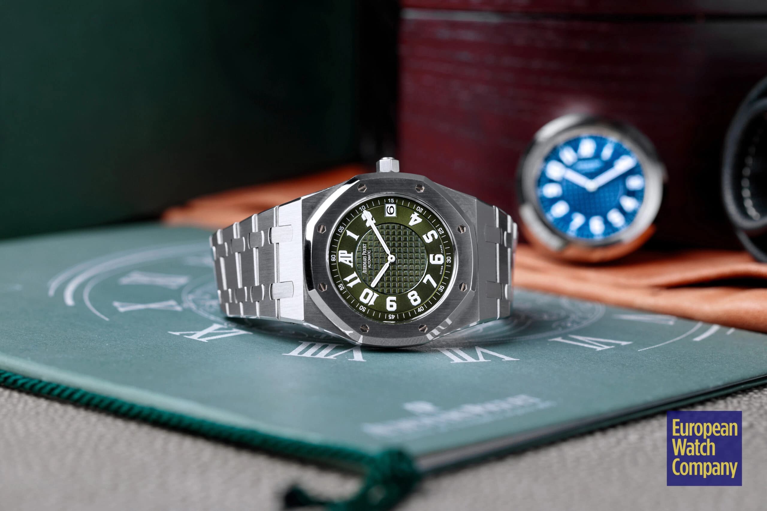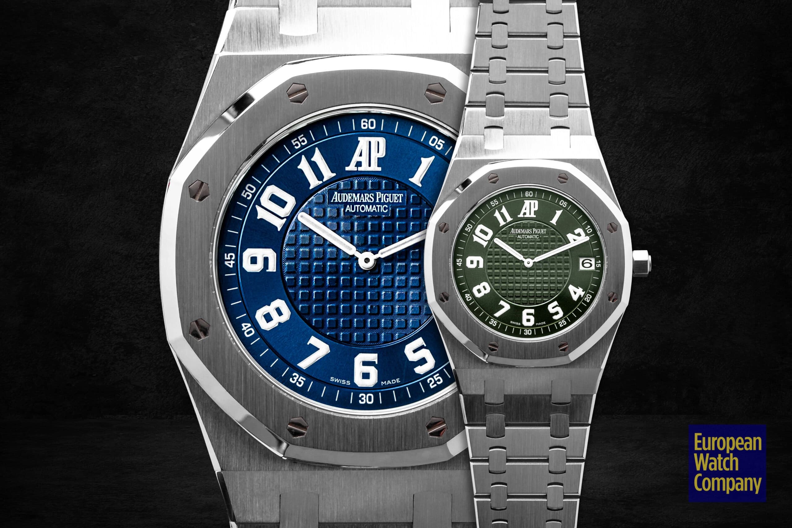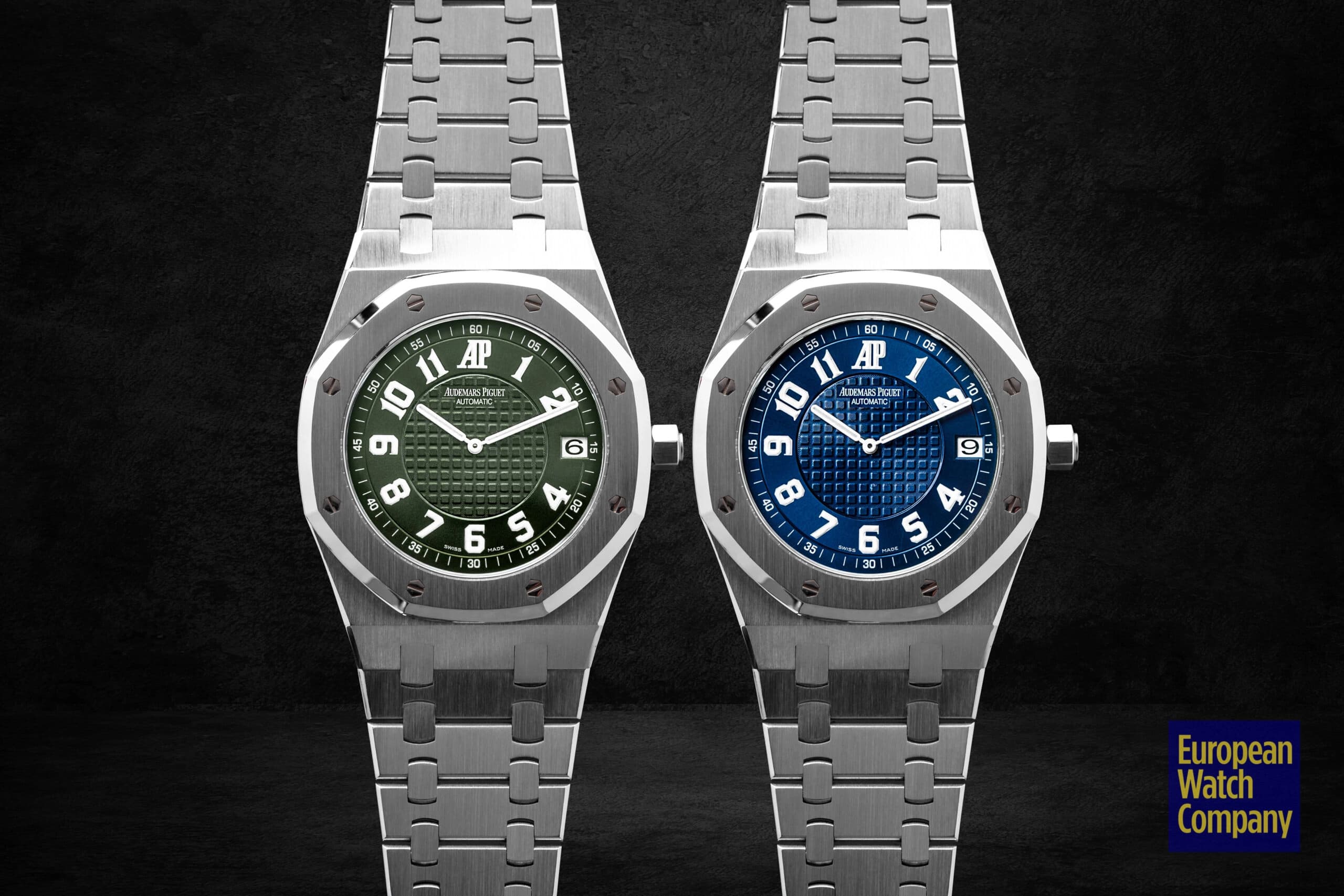 You'll also notice that the layout of the dial is very different from a standard Royal Oak. It's sort of like a hybrid between Military style dialed Royal Oaks and the standard production model but with a minute track thrown around the border for good measure. Between the two, I definitely prefer the blue but having the option to switch it to green—though not on the fly—is an awesome bonus feature that you almost never see.