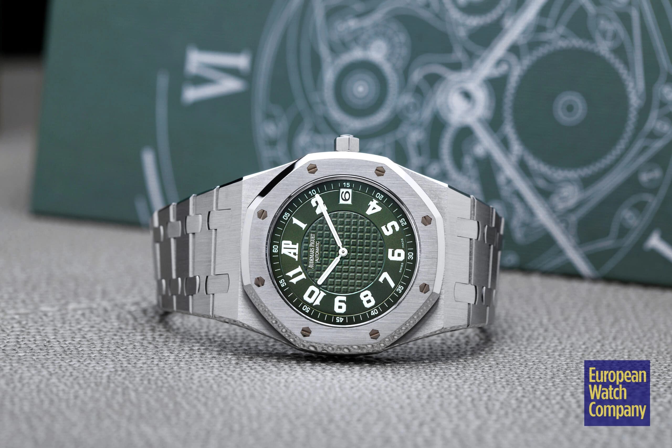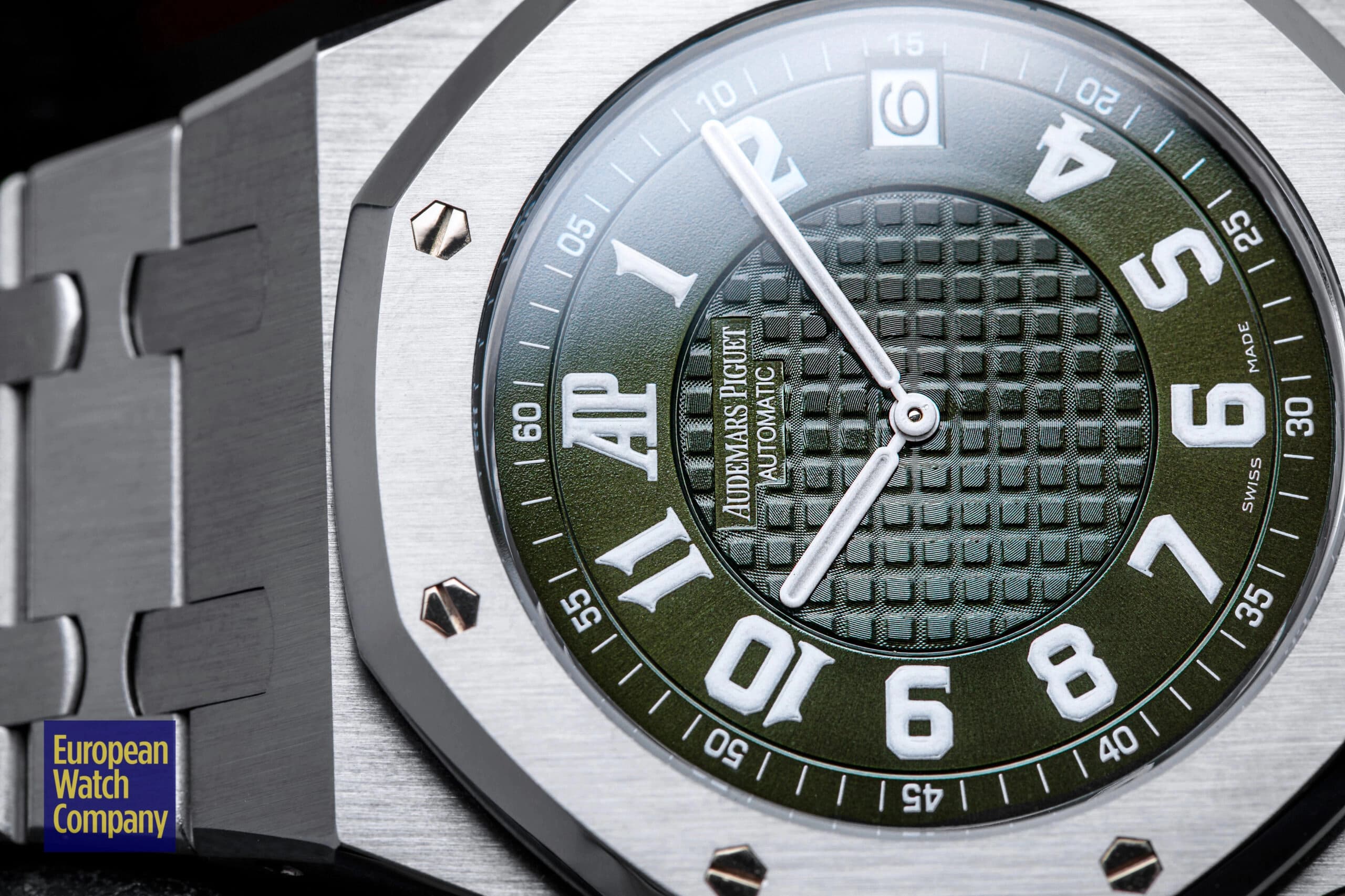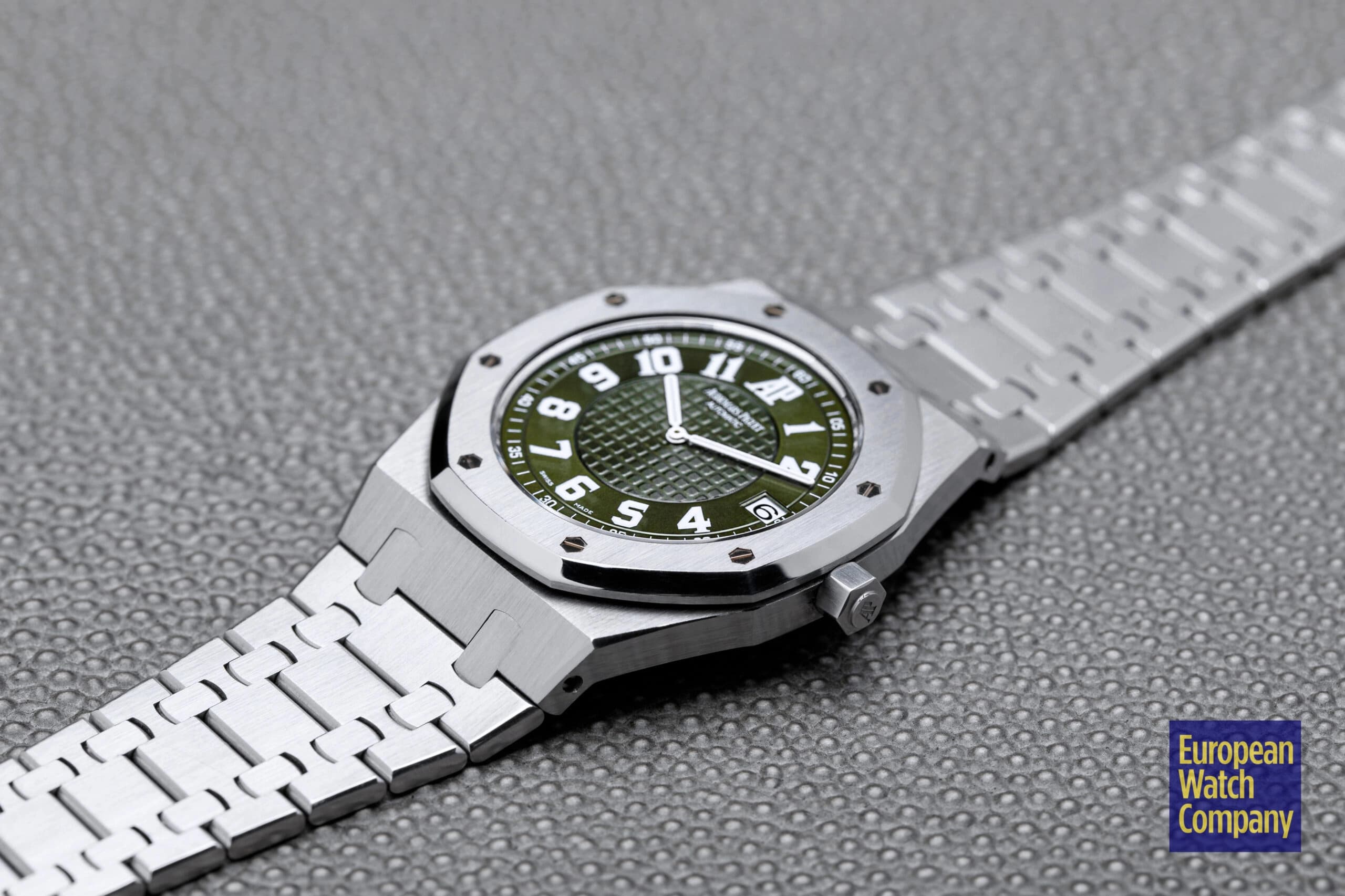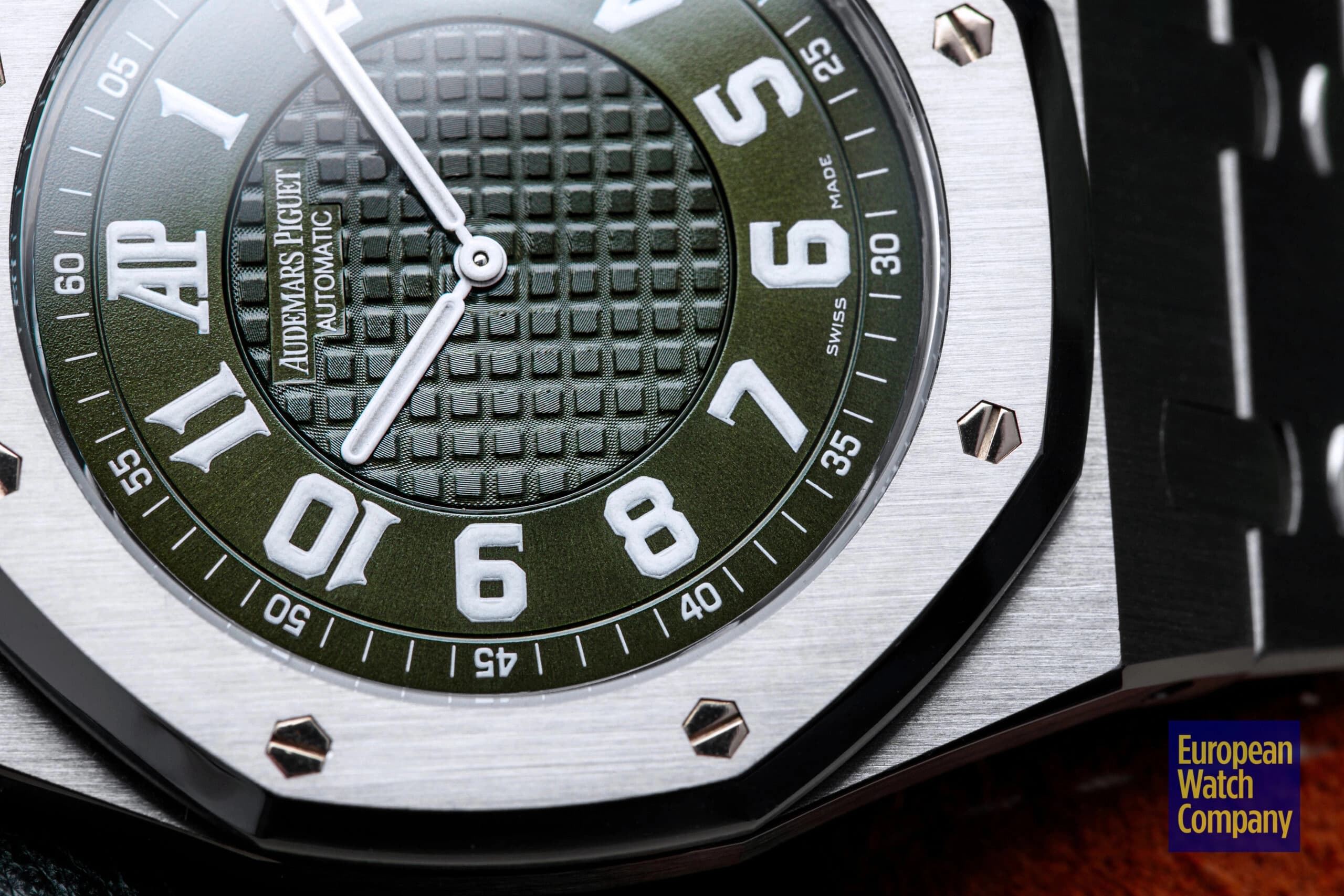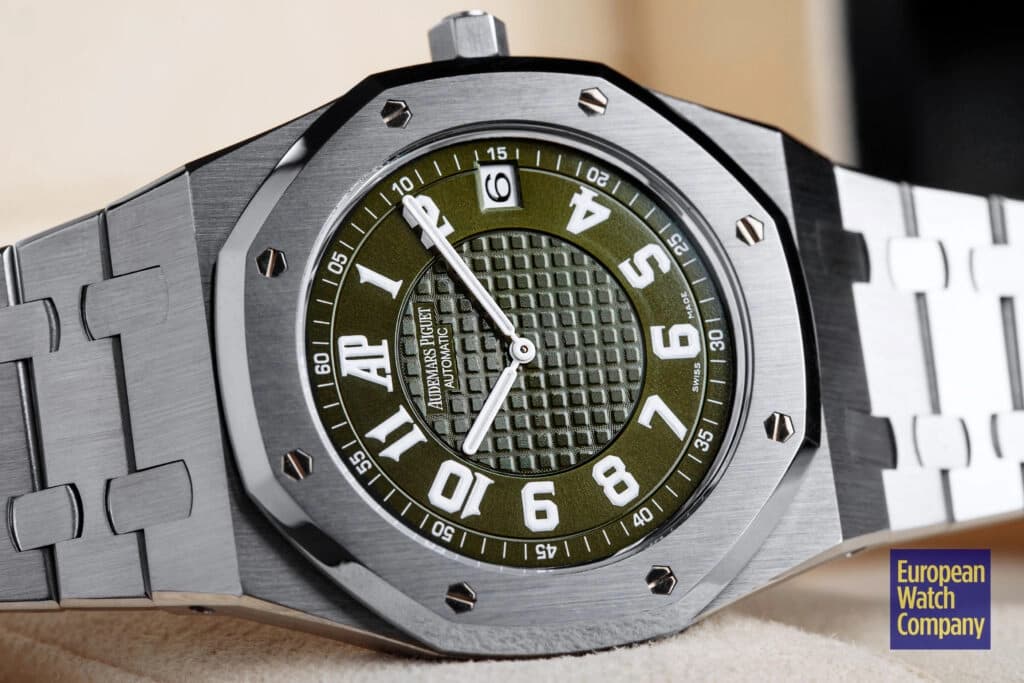 You'll also notice that the layout of the dial is very different from a standard Royal Oak. It's sort of like a hybrid between Military style dialed Royal Oaks and the standard production model but with a minute track thrown around the border for good measure. Between the two, I definitely prefer the blue but having the option to switch it to green—though not on the fly—is an awesome bonus feature that you almost never see.