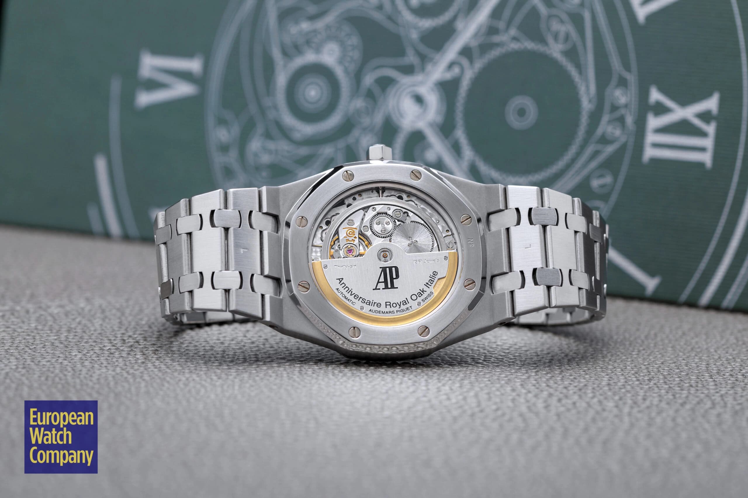 Some other interesting details on this reference are the "AP" shaped clasp on the bracelet and the display caseback. This is one of the earlier Royal Oaks to have a display caseback, and while the finishing is still at a high level, it is more subtle than what I'm used to seeing on more modern Royal Oaks. For me, this is a charming detail. The simple rotor with "Anniversaire Royal Oak Italie" and the clean but not flashy finishing serves as a snapshot of the brand's ideology and finishing style at that time, and it's is one of the most appealing things about this watch. Details like the finishing, "AP" clasp, and the unique dial design set this watch apart from the standard Royal Oak aesthetic that has persisted for 50 years. This watch is still very much a Royal Oak, but it's got a totally different personality than a standard production model, which greatly increases its attractiveness.