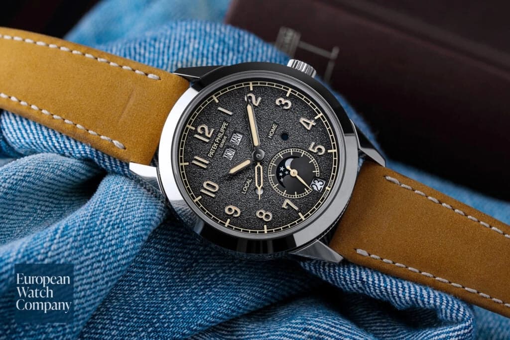 A recent introduction to the Calatrava collection, the Annual Calendar Travel Time Ref. 5326G is one of the watches that redefined the Calatrava collection. A far sportier design than the Calatravas of old, the 5326 was designed with a modern collector in mind. Alongside the annual calendar, the pilot-esque 5326 features a travel time complication, a dark charcoal textured dial, arabic numerals, syringe hands, and a clous de Paris finish on the case flanks. Powered by a micro-rotor movement, the watch is traditional Patek on the back, and progressive Patek on the front. Together, it works.