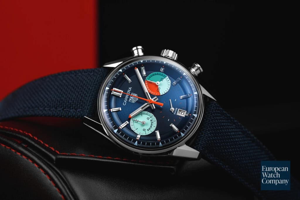 Popularized in the modern watch collector zeitgeist by high profile vintage Heuer sales and a limited edition released in 2018, the brand new TAG Heuer Carrera Skipper draws inspiration from a rare model originating in the 1960s. With its bright dial and sub-registers, the enthusiast community went wild when the watch was released just months ago. Indeed, vintage Heuers and modern TAG Heuers with vintage inspired designs have struck a chord with collectors in recent years, and the Skipper is no exception. The multi-colored chronograph minute counter not only looks cool, it was originally intended to act as a regatta timer for sailors. The Skipper utilizes TAG Heuer's immensely popular new Glassbox Carrera design and TH20-6 movement. We are thrilled to see Tag Heuer going back to its roots and its archive for inspiration and look forward to seeing many more new models like the TAG Heuer Carrera Skipper.