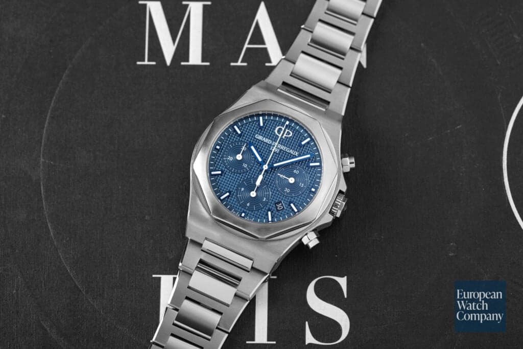 With its textured dial and integrated bracelet, it is easy to see the similarities between Girard-Perregaux’s Laureato and certain other steel sport chronographs...That being said, the Laureato has its own distinct identity, and has become something of an icon for GP given the model’s history and current success. Girard-Perregaux has a lauded history of developing fantastically finished in-house movements, and the Laureato chronograph is no exception. I would argue that in terms of build quality and finishing, it compares favorably to some more well-known options in much higher price-points, including the Royal Oak and Nautilus.