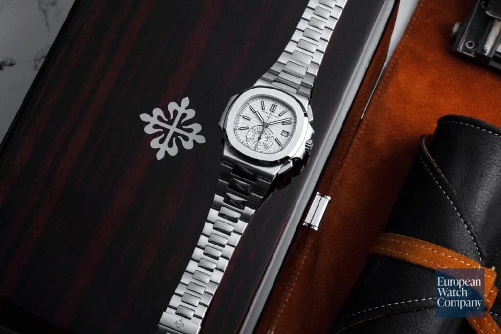 While the stainless steel Patek Philippe Nautilus Chronograph 5980/1A was discontinued in 2014, it remains incredibly popular (the two-tone steel and gold 5980/1AR and all rose gold 5980/1R are still currently in production). The combination of the iconic Nautilus design with the functionality of a 12-hour chronograph and a date function creates one of the most daily-wear-friendly complicated Pateks of recent history. The "overlapping" chronograph subdials at six o’clock keeps the dial from feeling cluttered (as opposed to having the more standard separate subdials). The blue dial is the closest to the original Nautilus, but this white dial was produced for the shortest period of time, making it the most collectible of the bunch.