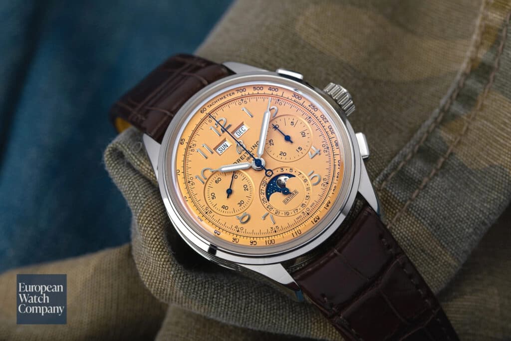 Combine an annual calendar, chronograph, and traditionally designed salmon dial and you get the stunning Breitling Premier B25 Datora. Relying on some of their more historical designs and moving away from the completely high-polished oversized designs of the early 2000s, this 42mm watch is a breath of fresh air for Breitling enthusiasts. Offered in stainless steel and with 100 meters of water resistance, this dressy timepiece is more than capable of being a suitable daily companion for those inclined towards a more traditional but modern sartorial style. And that price!