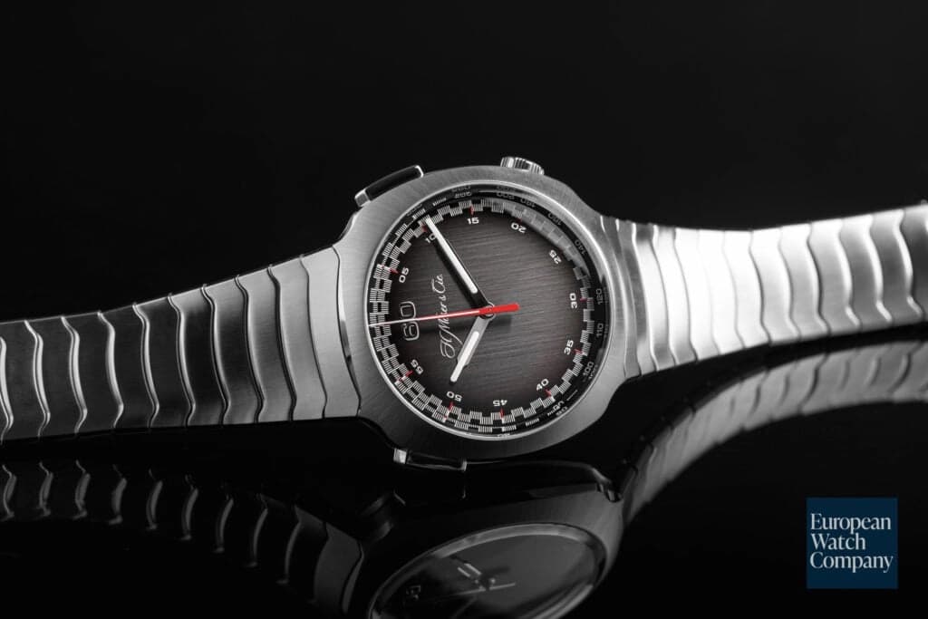 The Streamliner collection is H. Moser & Cie’s first foray into the integrated bracelet wristwatch category. The Streamliner Chronograph features their in-house HMC 907 movement with a flyback function and integrated clutch, giving the piece added horological cred. On top of that, the full movement is on display through the caseback, as the automatic winding mechanism is attached to the dial side of the movement. To keep the dial legible, both the chronograph seconds and minutes are centrally mounted. If you want to stray from the norm a bit, the H. Moser & Cie Streamliner is worth a closer look.