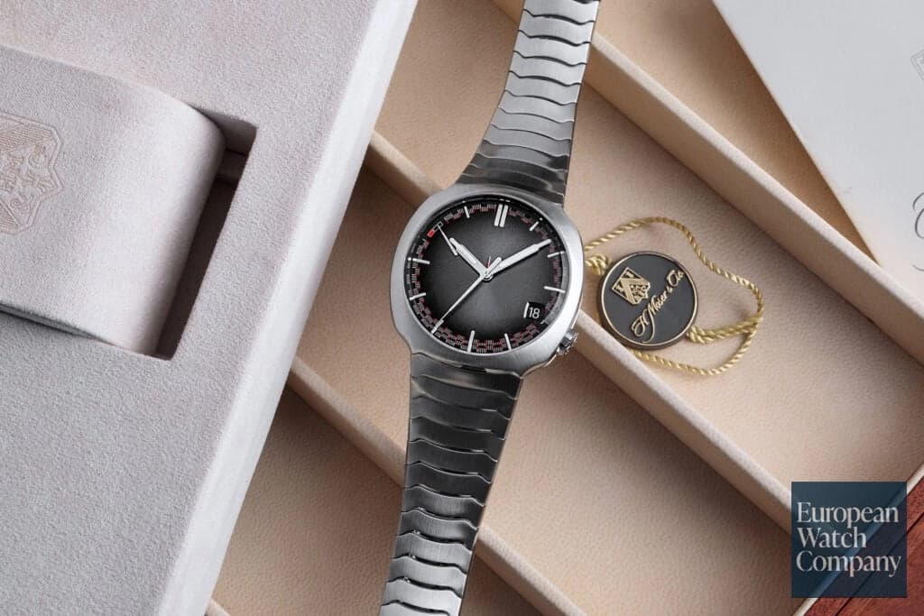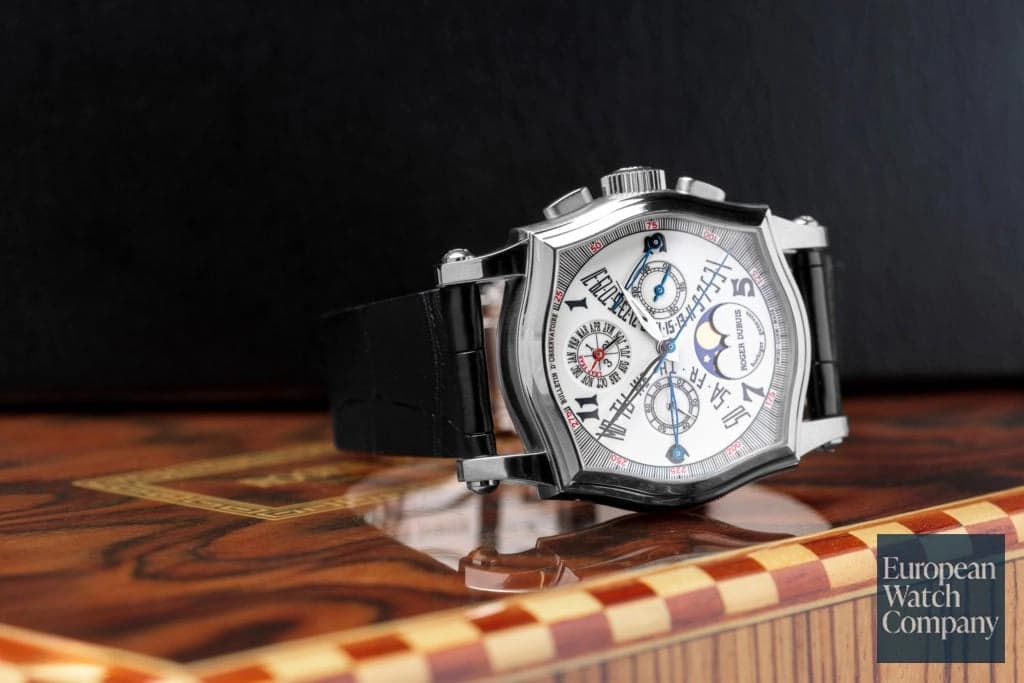 All F.P. Journe models carry the hallmarks of their creator and namesake, and just like Francois Paul himself, they're all just a little bit funky! Only 99 of this special limited edition Octa Calendrier were produced in ruthenium, and the model has become a true grail for Journe collectors worldwide. Created as part of a series from 2001-2004, it was the first time Journe had upsized the Octa Calandrier by 2mm to a larger 40mm case. Featuring a retrograde date display, day and month apertures, and iconic FPJ offset hours, minutes, and seconds, it might prove a bit difficult to track down one of these unicorns, but if you manage to get your hands on an Octo Calendrier, never let it go.