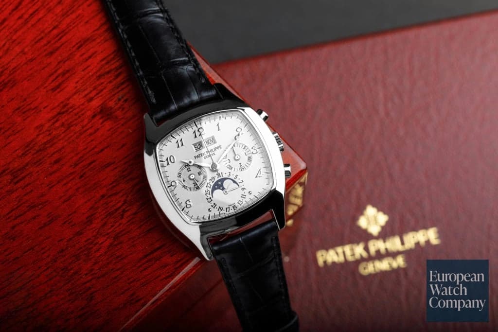 If you are looking for something outside of the box from Patek Philippe, the Ref. 5020G is an interesting piece. The 5020G shocked the watch world back in the 90's with its not quite square, not quite round case shape. The collecting public was fairly skeptical, which is exactly what gives this timepiece its allure today. Call the shape what you will (cushion, tonneau, square), the 5020's Lemania based calibre and applied white gold Breguet numerals on a silver dial establish the model as one of Patek Phillippe’s more enigmatic entries into the perpetual calendar category.