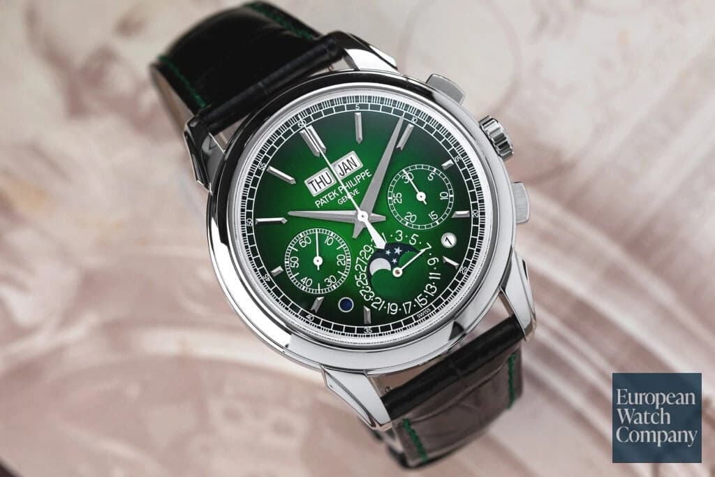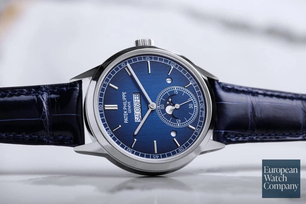 There’s nothing quite as lively and interesting on a watch dial as a retrograde display, reminding you that time really isn’t always as linear as it seems. When the 5496P was launched in 2011, Patek Philippe shook up the game by departing from the typical three subdial layout (for day, date, and month), utilizing apertures at 3, 12, and 9 o’clock instead and a retrograde date display that spans from 8 to 4. Complete with a platinum case and moonphase display, it’s not hard to see why so many love the ref. 5496P. And if you’re in search for something über-rare, look out for the blue dial.