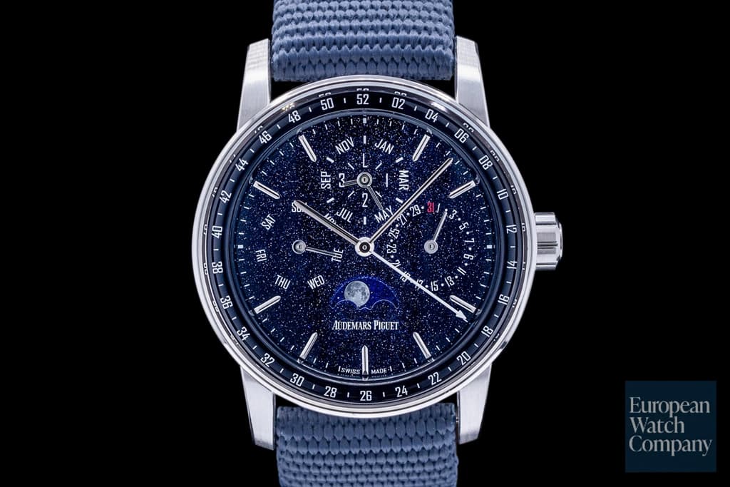 When you think of Audemars Piguet, like the rest of the world, you probably think of the Royal Oak. There is more to AP than this one iconic watch though! If you are in search of something a little different from the manufacture "born in Le Brassus", check out the white gold Code 11:59 Perpetual Calendar, with beautiful, starry aventurine dial. But you won’t just get lost amongst the stars with this watch. While the dial gives off the illusion of a circular shape, the middle case is octagonal (perhaps in reference to the Royal Oak...) with delicate satin and high-polished surfaces and the crystal has a unique domed, double curved shape. These details are often lost if the watch is only seen in photographs making the Code 11:59 Perpetual Calendar a watch that truly has to be seen in person to appreciate.