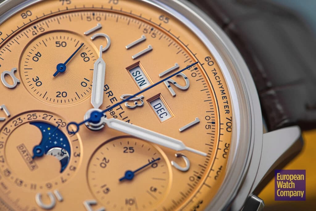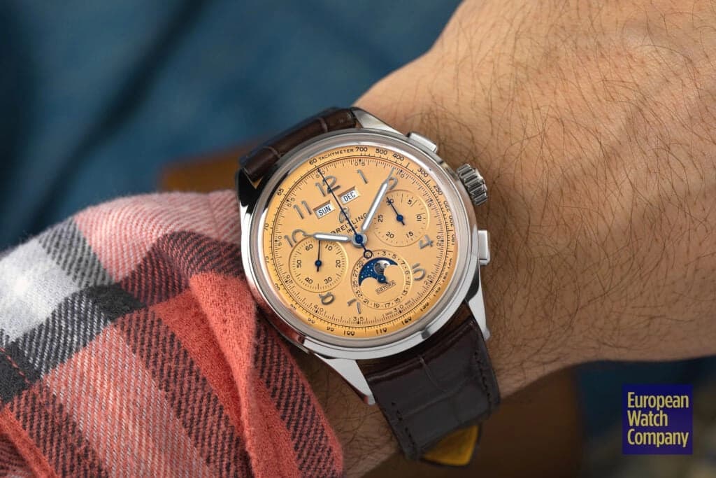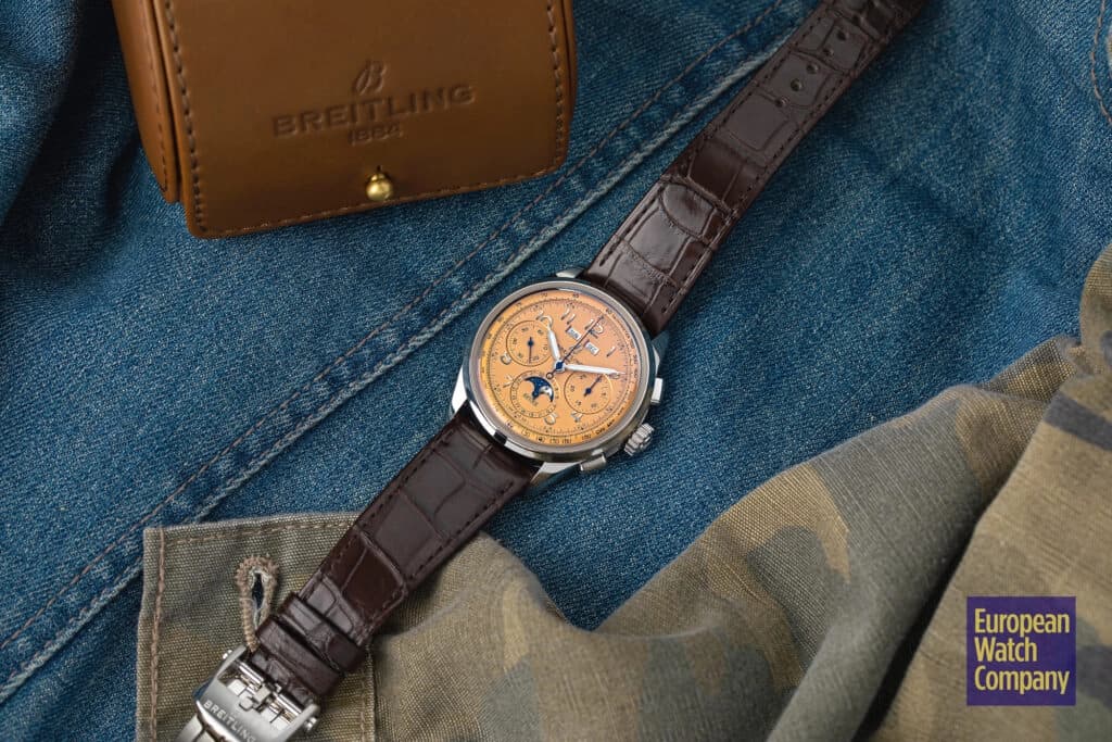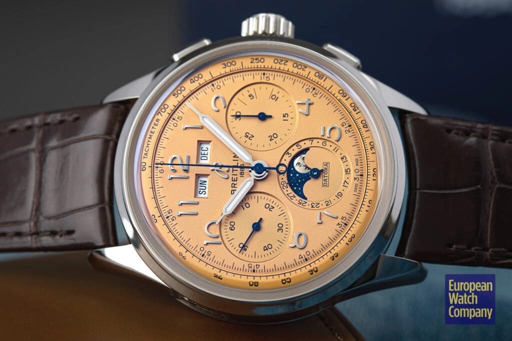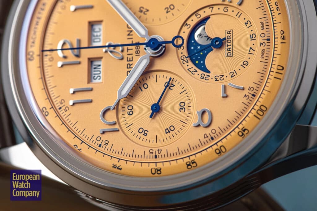 Before getting further into it, it’s only fair to address the elephant in the room. While some may choose to debate this statement, calling this dial a salmon dial is a bit of a stretch. When the watch first launch, many media were quick to jump onto the nomenclature, but even Breitling themselves know better (they refer to it as a copper dial). Color is a spectrum, and always will be, but if we were to side with camp salmon, we’d at the very least qualify it as being farmed salmon rather than any salmon caught in the wild — if you know, you know.