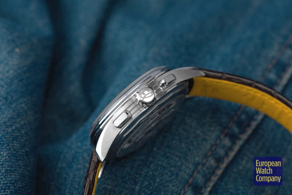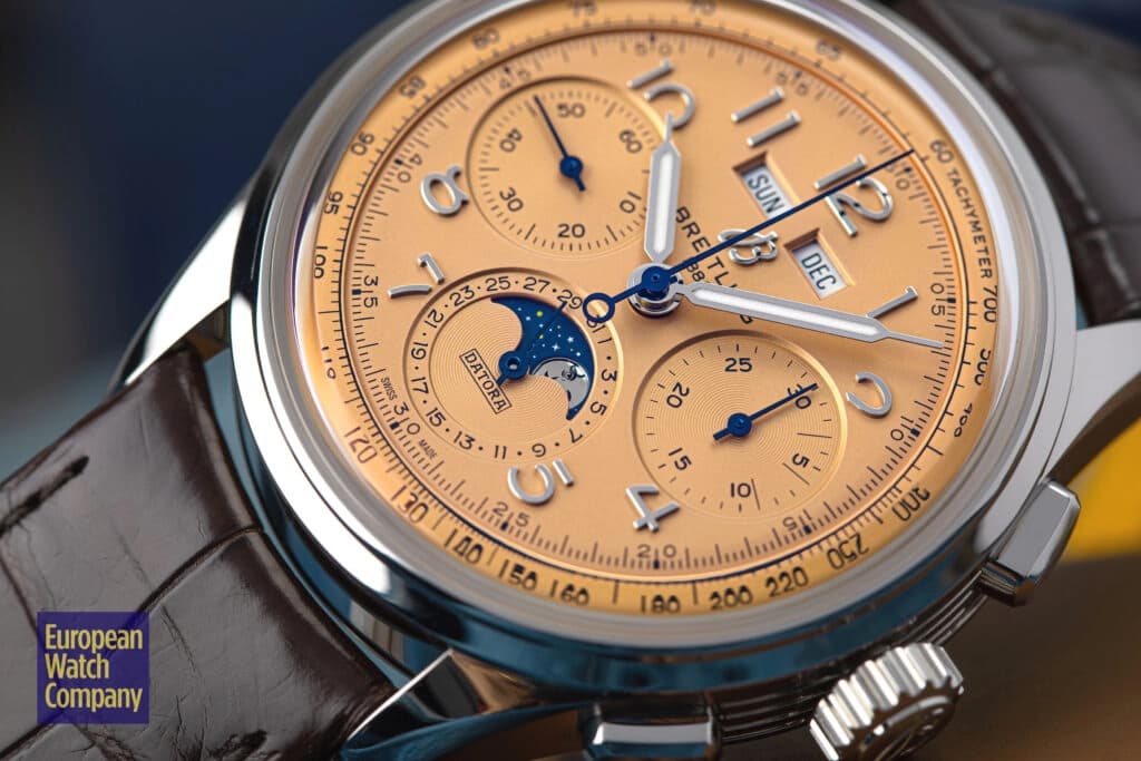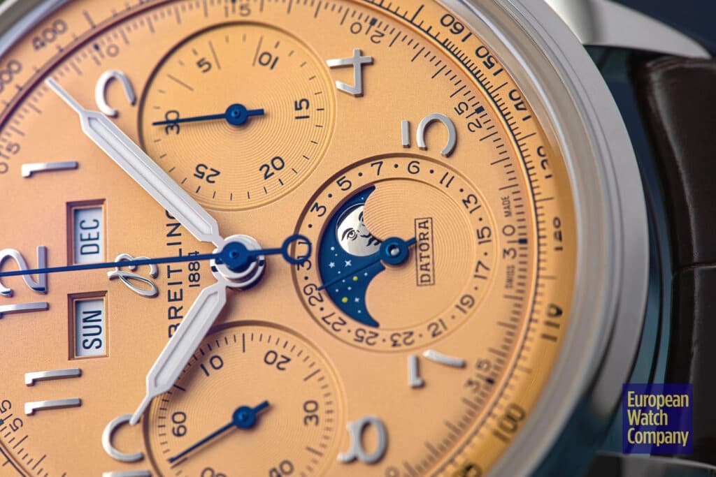 Beginning in the 1940’s Breitling introduced the “Datora” model line, a series of mid-century triple calendar chronographs that helped Breitling to establish their name. Sporty in aesthetics, Breitling’s Datora was the utilitarian alternative to the Patek Philippe chronographs of the 40s and 50’s. With time, the Breitling brand changed ownership several times, but the Triple Calendar Chronograph remained a cornerstone of the collection as a nostalgic revival of the brand’s past legacy.