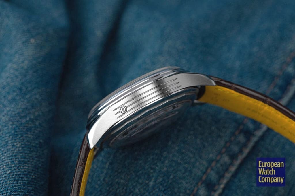 The first example to spring to mind, and one that will set you back a fair bit more than the Breitling is the Vacheron Constantin Cornes De Vache. Like the Breitling, it’s inspiration is tied very close to its 1955 predecessor, however in this case Vacheron stayed a bit more true to the original in proportions. Measuring 38.5mm in diameter and a little over 10mm thick, the sleek manually-wound chronograph could safely pass for a vintage watch when viewed by an untrained eye.