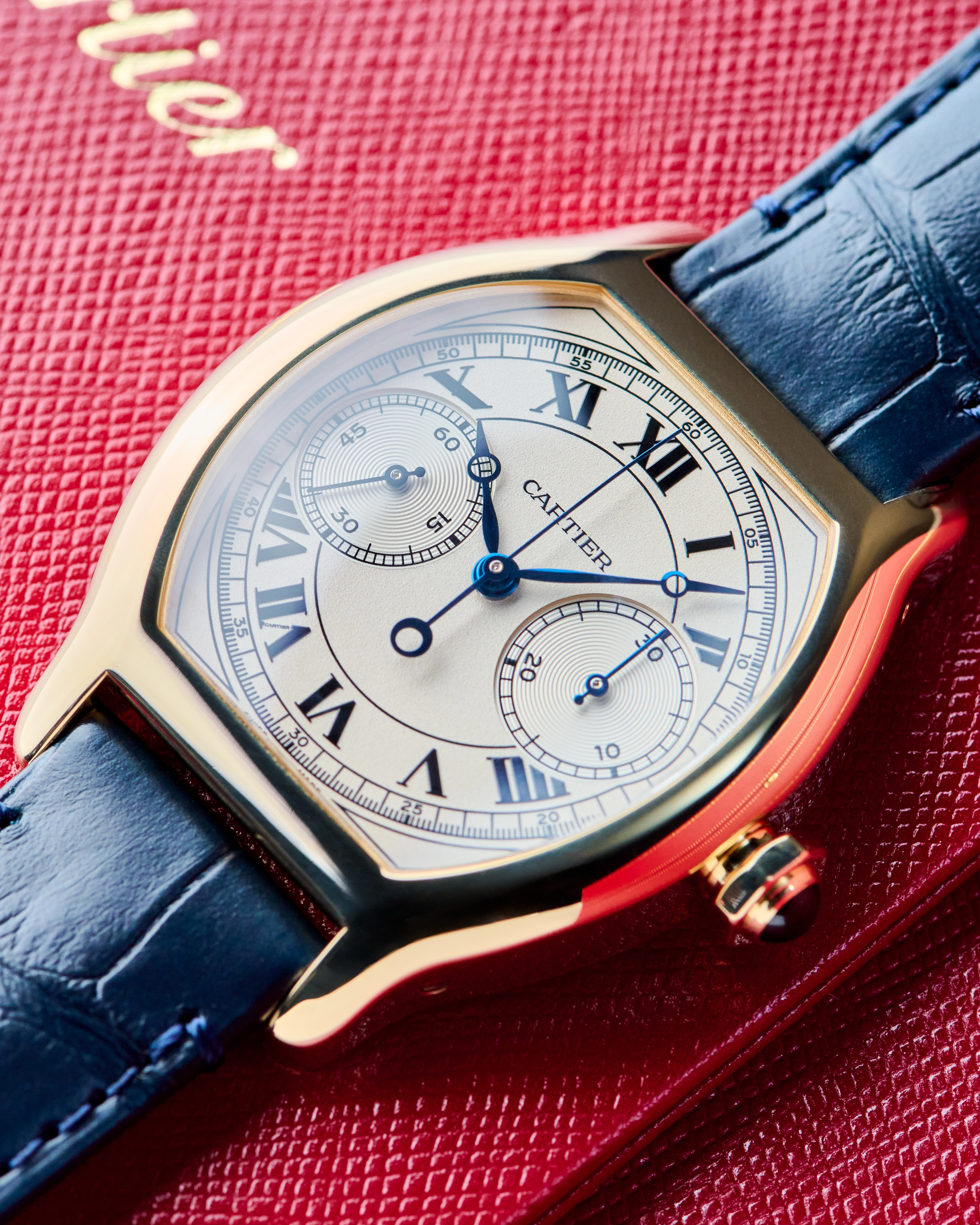 This 2024 Tortue Monopoussoir Chronograph from the Privé Collection demonstrates the seamless intersection of heritage, elegance, and complicated watchmaking that are a true hallmark of Cartier.