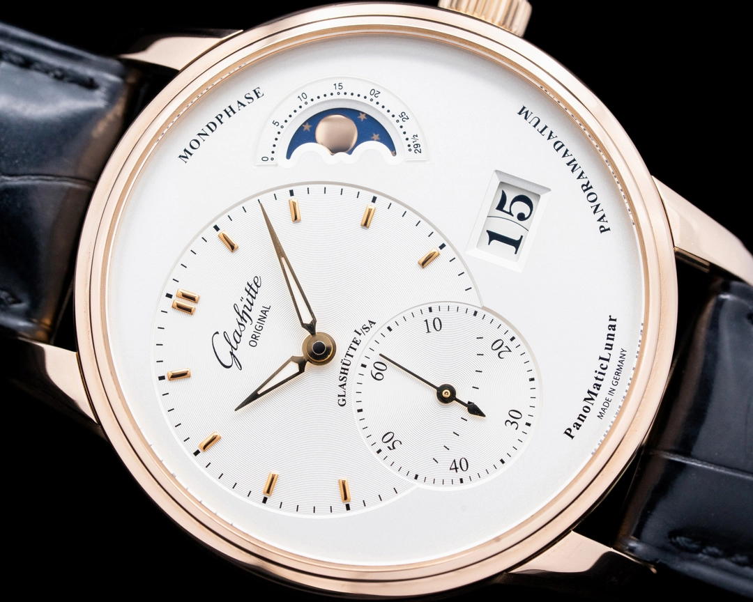Asymmetry is often mistaken for imbalance. The PanoMaticLunar proves otherwise. By shifting the time display off-center, Glashüette Original creates room, literal and visual, for complications to breathe. The date, presented via the brand’s signature Panorama Date, feels intentional rather than invasive. It reinforces the dial’s geometry.