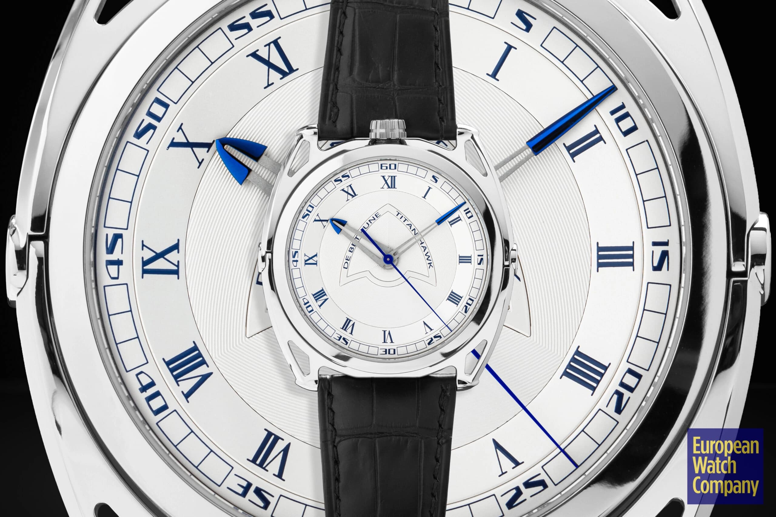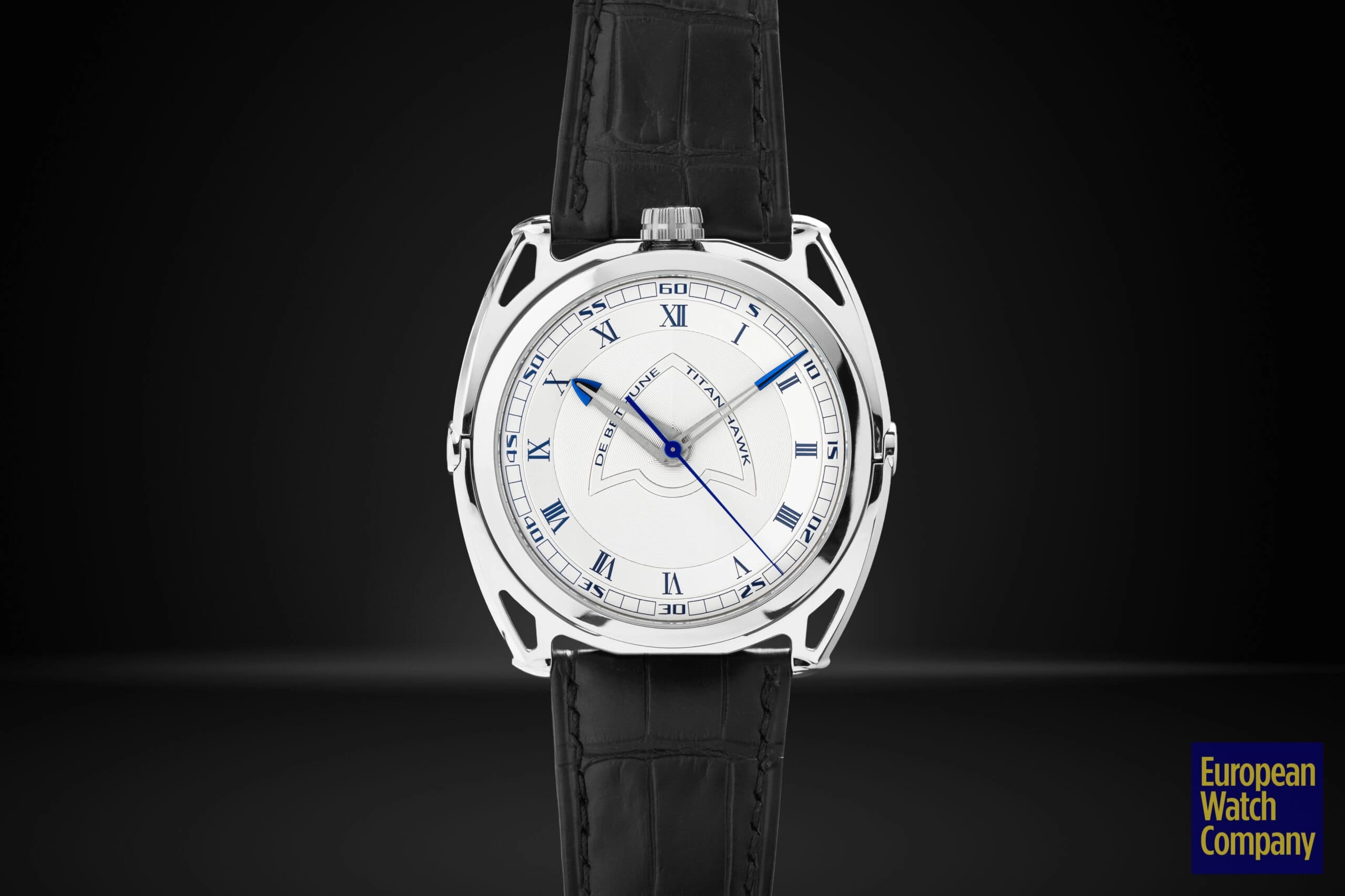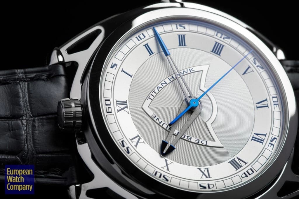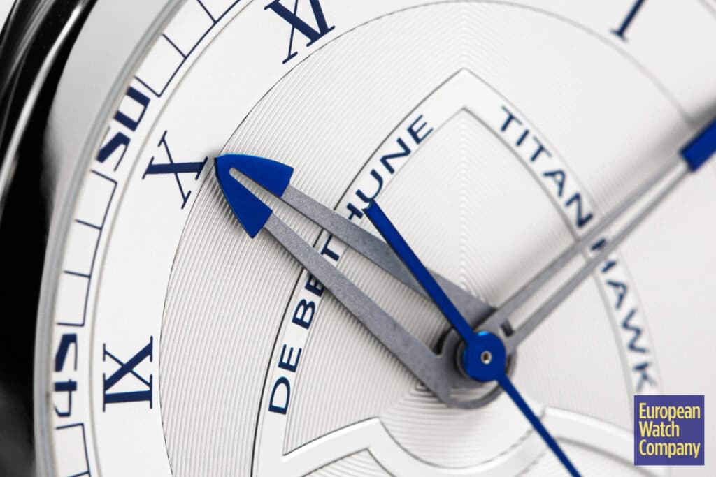 For being a thoroughly modern watch, the Titan Hawk V2 sneaks in a few more classic design cues than expected. The dial features a mix of Roman and Arabic numerals, and a thin bezel surrounding sapphire crystal. The case is another area where classical convention meets modern innovation—stick with me here. De Bethune’s floating lug case has been around since the launch of the DB28, and is unlike anything else on the market. Aside from being extremely futuristic in design (not to mention it’s one of the most comfortable watch cases on the planet), there’s a subtle nod to history here. If you look at the lugs and the case as two separate units, you begin to see that the watch head itself is effectively a suspended pocket watch, albeit in very modern form. That modernity is further cemented by the use of titanium as the case material, which was never in the catalog in the days of pocket watches.