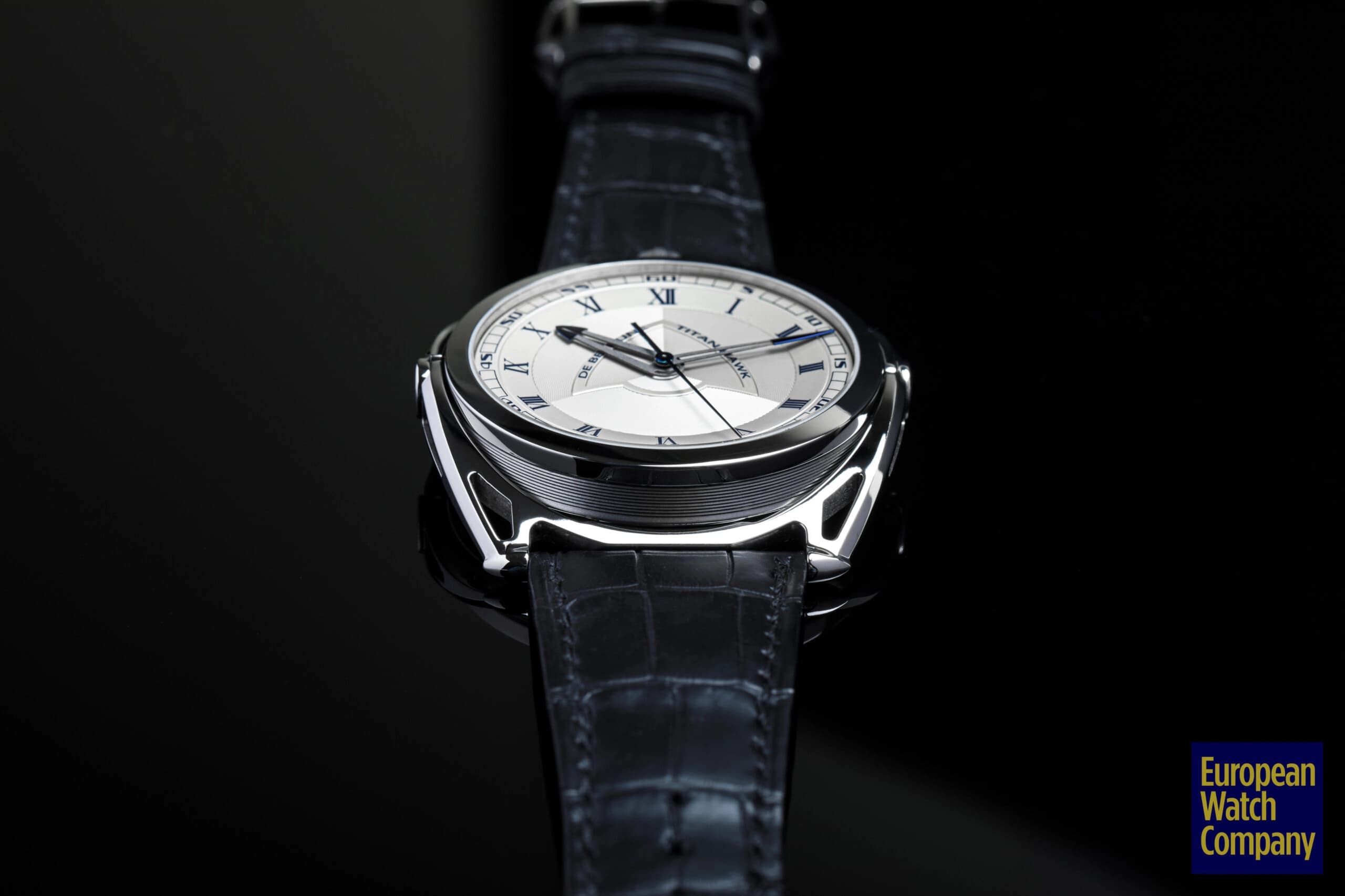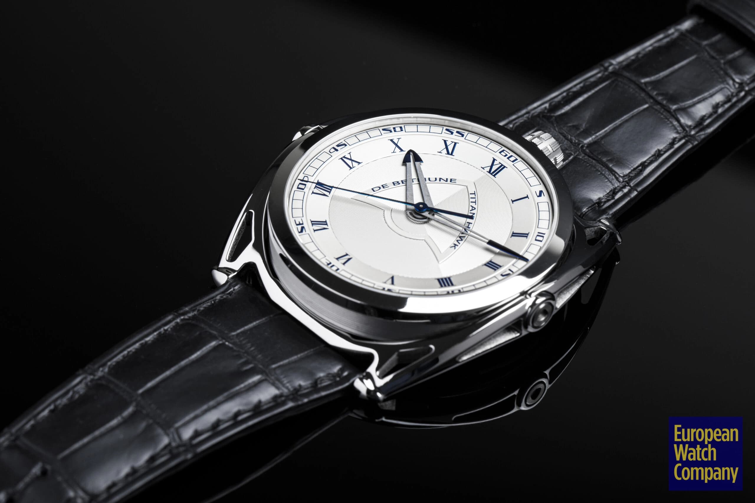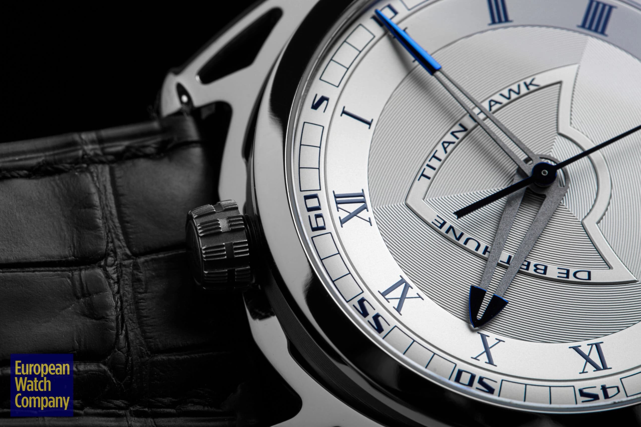 For being a thoroughly modern watch, the Titan Hawk V2 sneaks in a few more classic design cues than expected. The dial features a mix of Roman and Arabic numerals, and a thin bezel surrounding sapphire crystal. The case is another area where classical convention meets modern innovation—stick with me here. De Bethune’s floating lug case has been around since the launch of the DB28, and is unlike anything else on the market. Aside from being extremely futuristic in design (not to mention it’s one of the most comfortable watch cases on the planet), there’s a subtle nod to history here. If you look at the lugs and the case as two separate units, you begin to see that the watch head itself is effectively a suspended pocket watch, albeit in very modern form. That modernity is further cemented by the use of titanium as the case material, which was never in the catalog in the days of pocket watches.