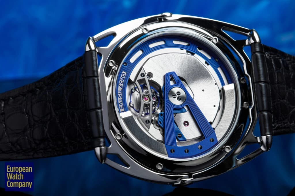 For a brand that has only been around since 2002, De Bethune has been busy. They’ve won three GPHG awards, have numerous patents, and produced a number of in-house calibers. The De Bethune DB27 Titan Hawk is a model that was first introduced in 2012, to mark the 10-year anniversary of the brand. Carrying forward the floating lug design and 12 o’clock crown from the DB28, the DB27 was designed as the brand’s more “entry level” offering. 2017 saw a minor refresh of the original De Bethune DB27 Titan Hawk, as a sort of final edition, then followed by the fully reworked V2 the following year. For the DB27 V2, central seconds replaced the date indication, and the case back was opened up a good deal more.