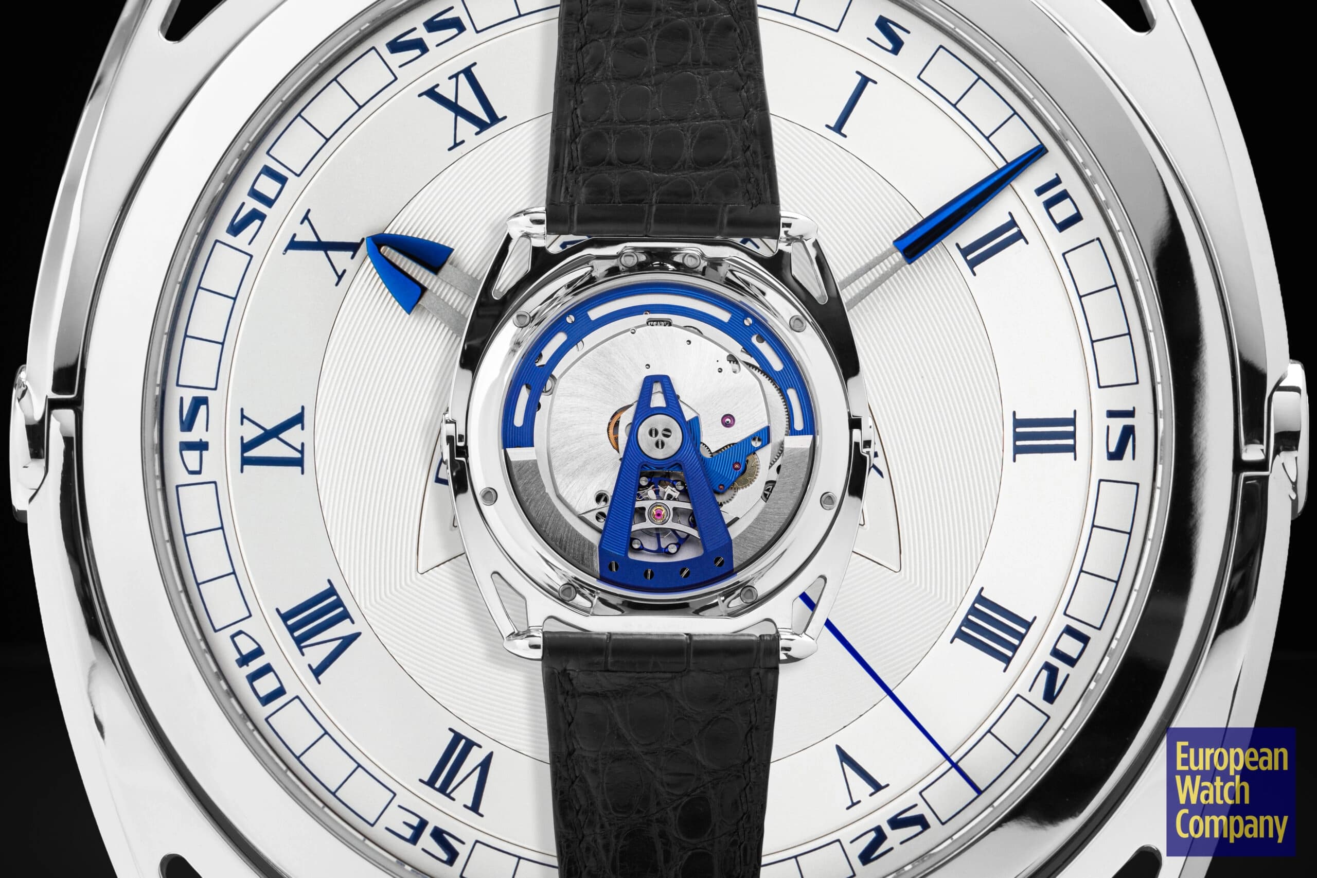 If that throws you off a bit too much with the rotating outer track, then consider the Romain Gauthier Prestige HMS Ten. Rose gold and deep blue are pleasing to the eye, and you’ve got a very classic dial offset with a view of the movement down below. But wait - where’s the crown? For that, you flip the watch over and see Gauthier’s genius at work, with a serrated wheel allowing you to wind the movement. This also gives you a rather lovely view of the work that went into the components involved in creating such a piece.