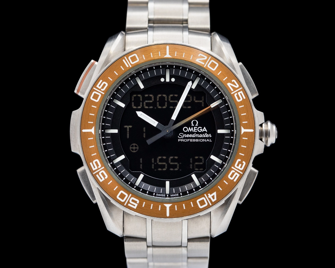 Across the table sits Omega’s Speedmaster X-33 Marstimer, which is doing something similarly unhinged, just at an interplanetary scale. Developed with the European Space Agency, the Marstimer uses a sophisticated thermo-compensated quartz movement to track both Earth time and Martian sols. Its hybrid display is dense, technical, and nerdy to the max. No one needs to know the time on Mars. That’s precisely the point.