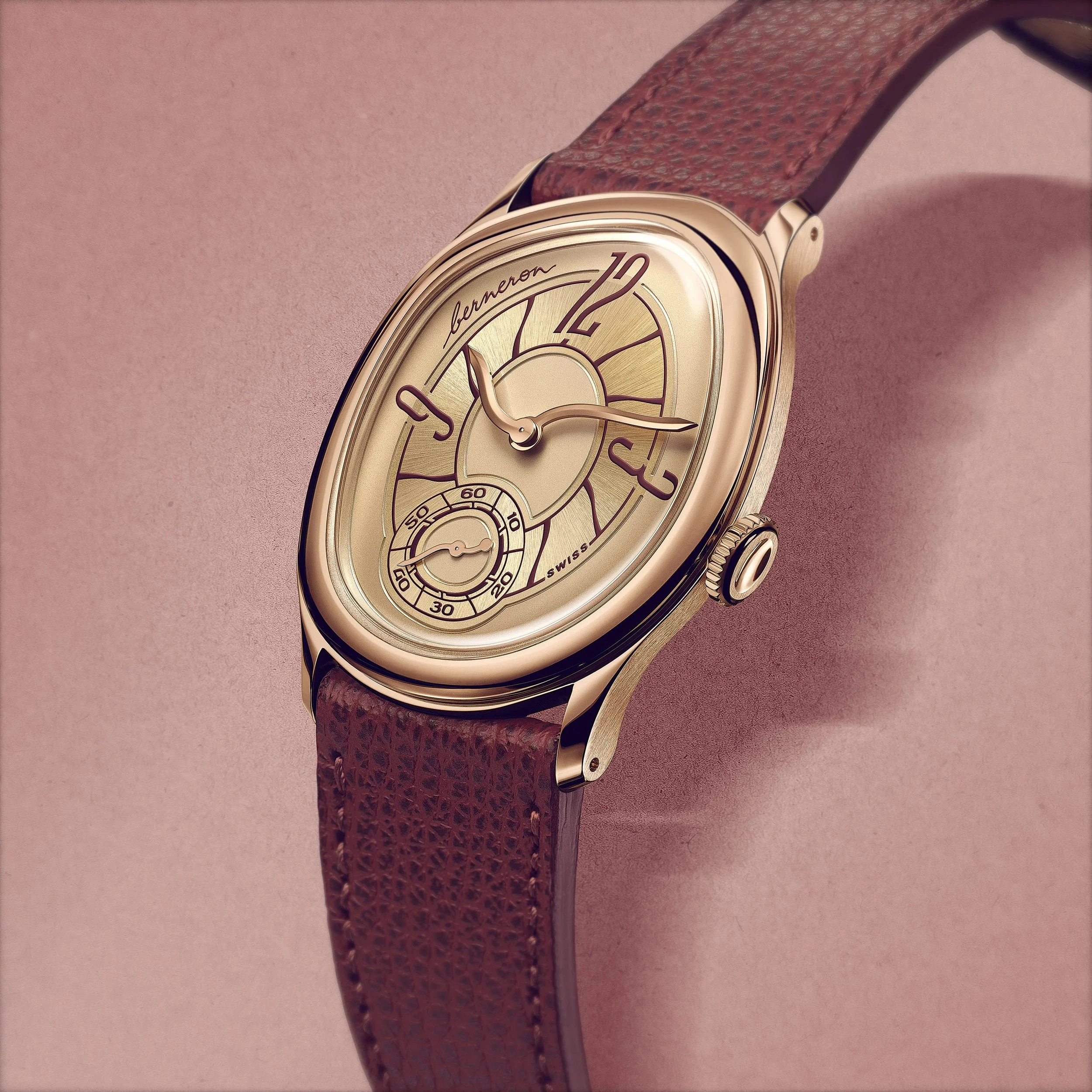 Sylvain Berneron’s Mirage Sienna arrives from the opposite direction but lands in the same place. Guided by the principle that form follows function, the Mirage’s distinctive case shape was engineered to serve the movement inside it. Berneron’s in-house Calibre 233 uses the unusual geometry to house a larger barrel, delivering extended power reserve while maintaining a slim, elegant profile. Nothing here is arbitrary; every curve earns its keep.