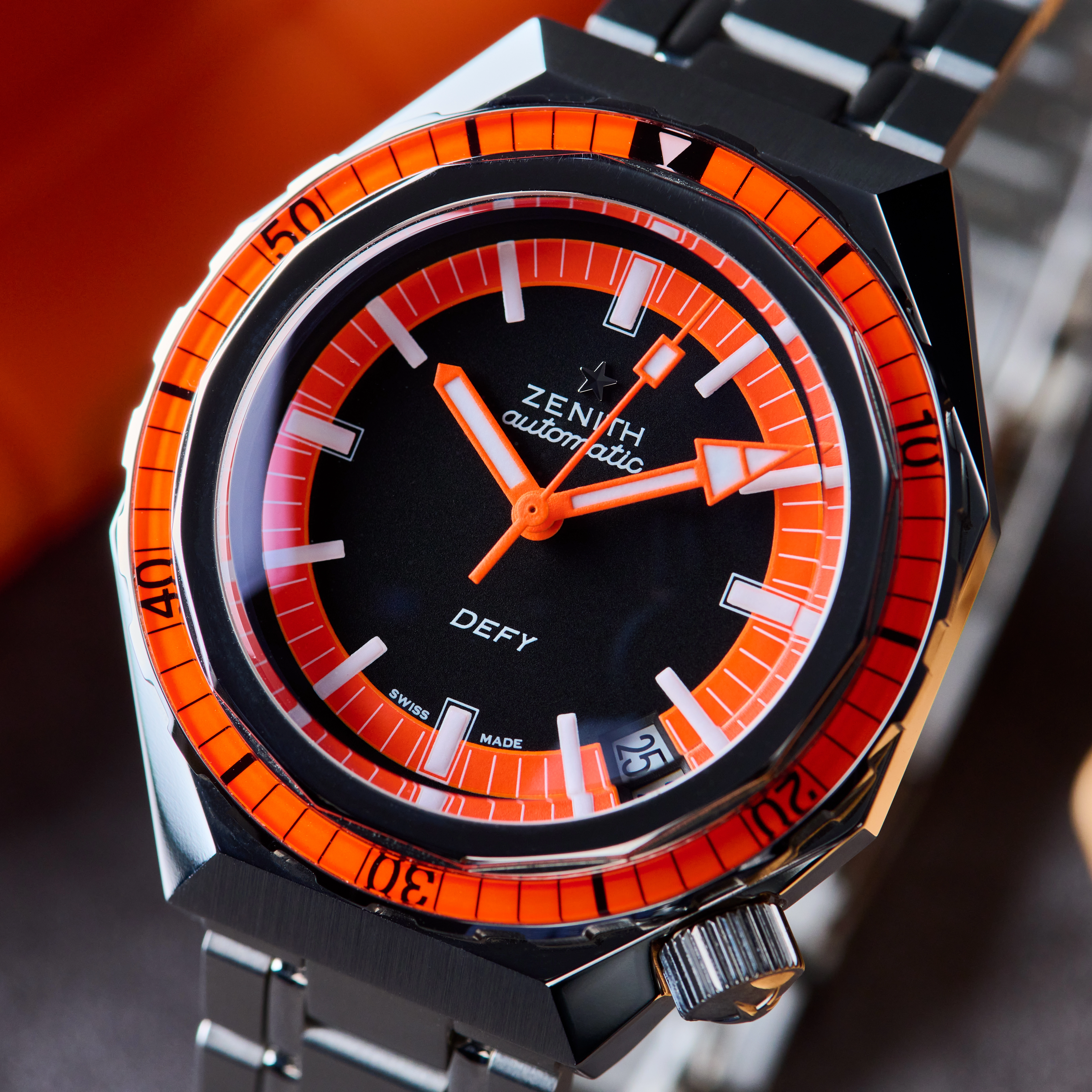 The Zenith Defy Revival channels a similar eccentricity, but from the past rather than the future. Its angular case, bold colors, and integrated ladder bracelet resurrect a 1970s design language that once felt radical, and still does. Inside beats Zenith’s own automatic movement, elevating the Defy into a slightly dressier sports watch without dulling its edge.