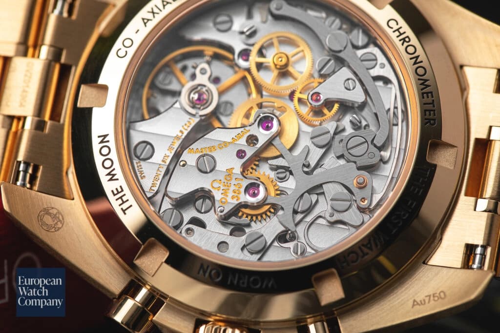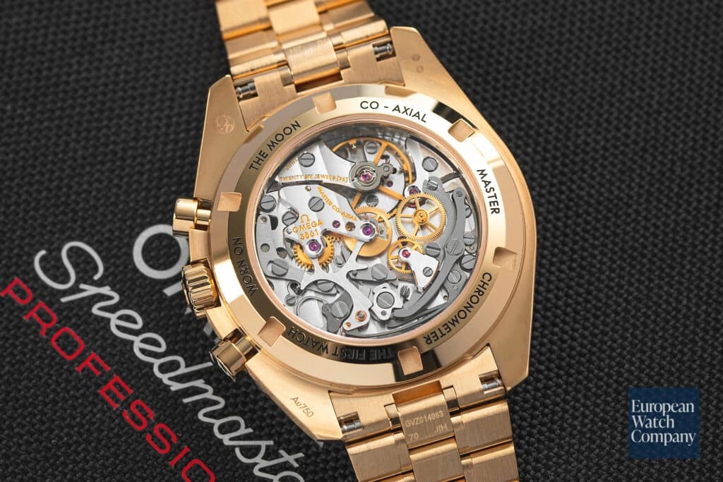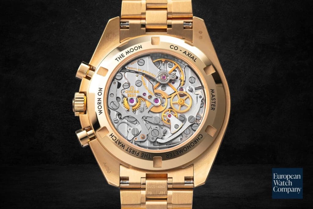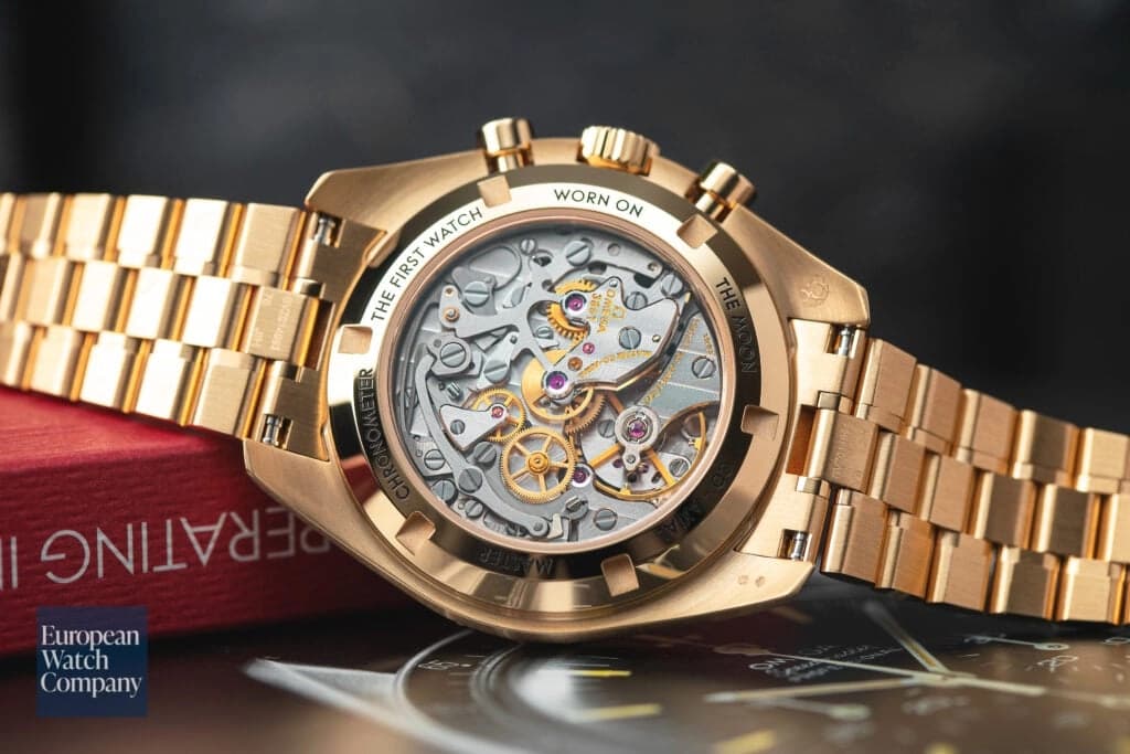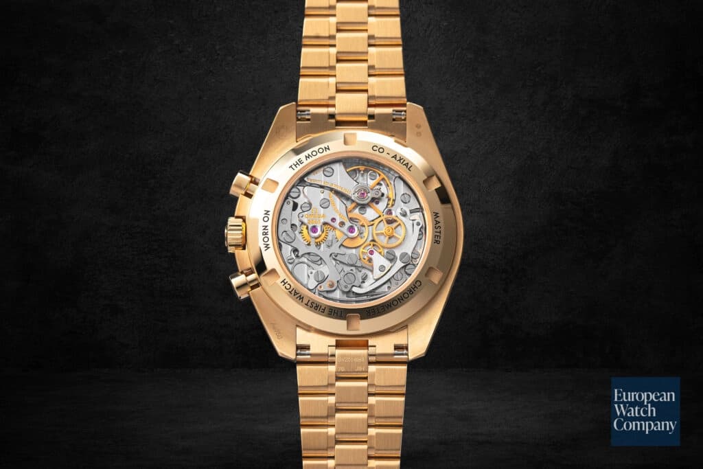 If one was feeling dismissive of the Omega Speedmaster Professional lineup, you could simply state “if you’ve seen one, you’ve seen them all.” And you wouldn’t be wrong. That statement does overlook the concept that Omega got so much right from the get-go that there just was not a lot that needed to be addressed. In this version, we have the more ubiquitous steel of the case and bracelet replaced by Moonshine. This golden alloy is comprised of gold, silver, copper, and palladium, which gives it a cooler hue than the traditional 18K gold, which is 75% gold and 25% copper. Along with a unique look, this material is also meant to keep the hue and shine from fading over time. In other words, if you take care of the watch, it could look almost showroom new for a good long time.