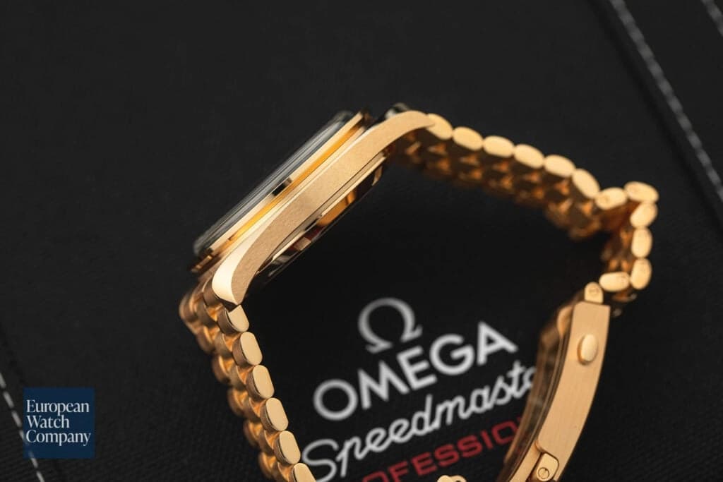 When we think of the Omega Speedmaster, we tend to envision the ultimate tool watch, encased in steel and built to time things in the most demanding scenarios, be it the race track or outer space. In other words, it’s an ideal of the sports watch. For all that, having that steel swapped out for a gold alloy is actually not a new development for the lineup, with it most recently coming in the guise of the Omega Speedmaster Moonwatch Professional "Moonshine" with a charming forest green dial.