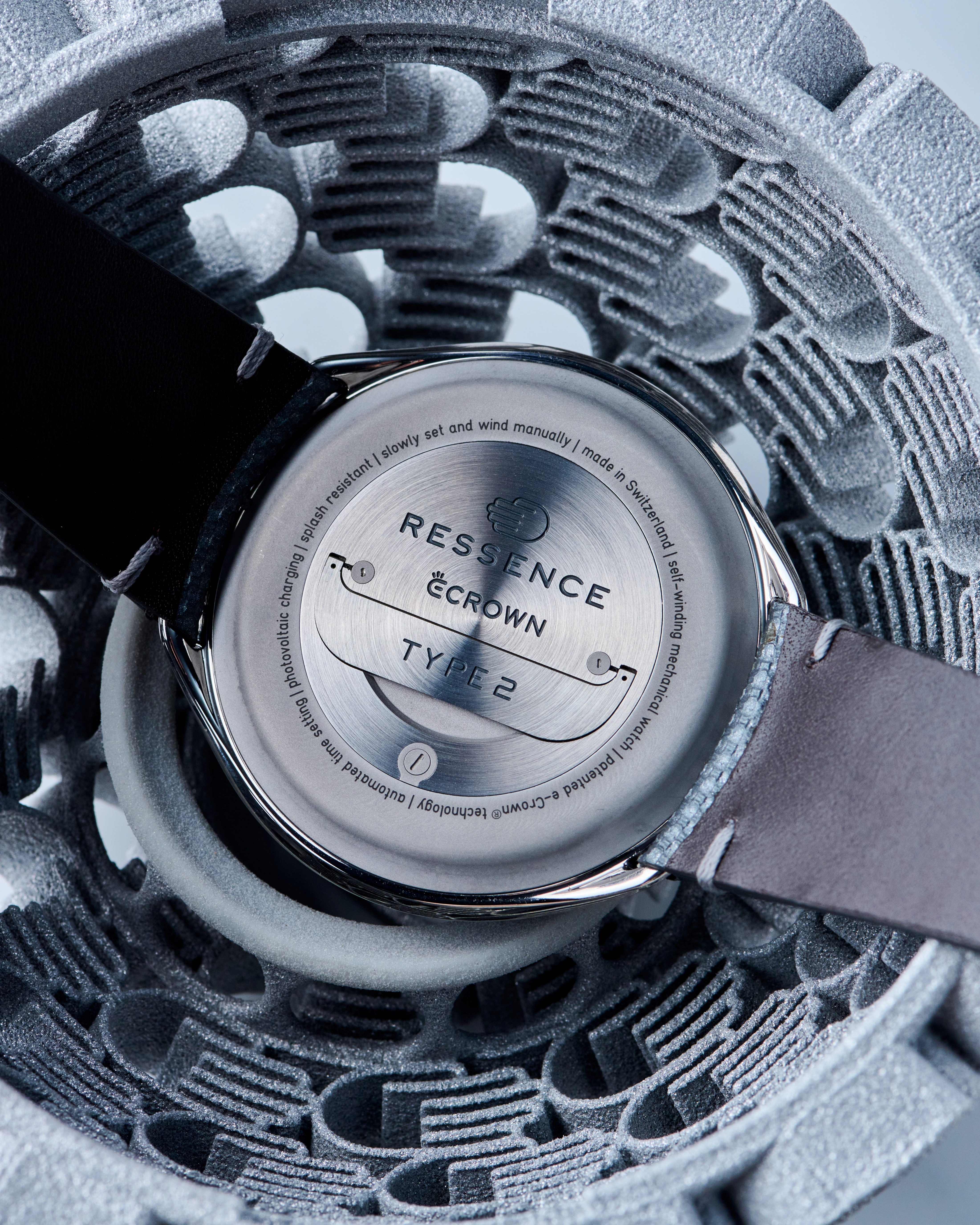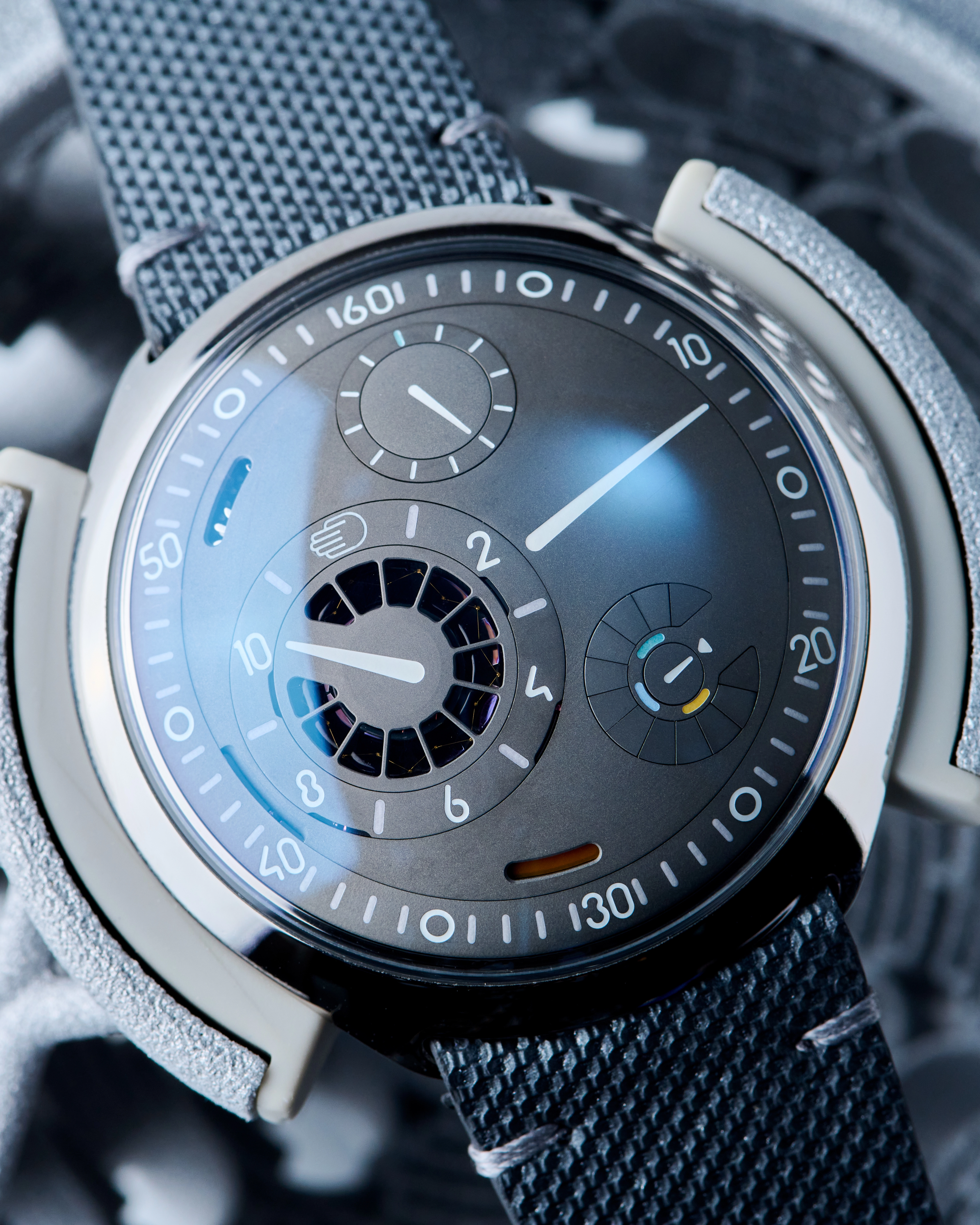 Ressence is another brand that defies the conventional ways of displaying time. Founded by industrial designer Benôit Mintiens in 2010, the brand is known for being unburdened by the traditional way of displaying time, developing orbital time displays that speak to the avant-garde design history of the brand’s home in Antwerp. This Type 2G e-Crown takes this concept a step further, forgoing a conventional crown and integrating an e-Crown technology that allows the wearer to set and synchronize the time via smart controls. (Trust us, it is absolutely mind-blowing the first time you see the watch “set itself”.) It’s cool, funky, and very unconventional, but also incredibly wearable with its lightweight titanium case.