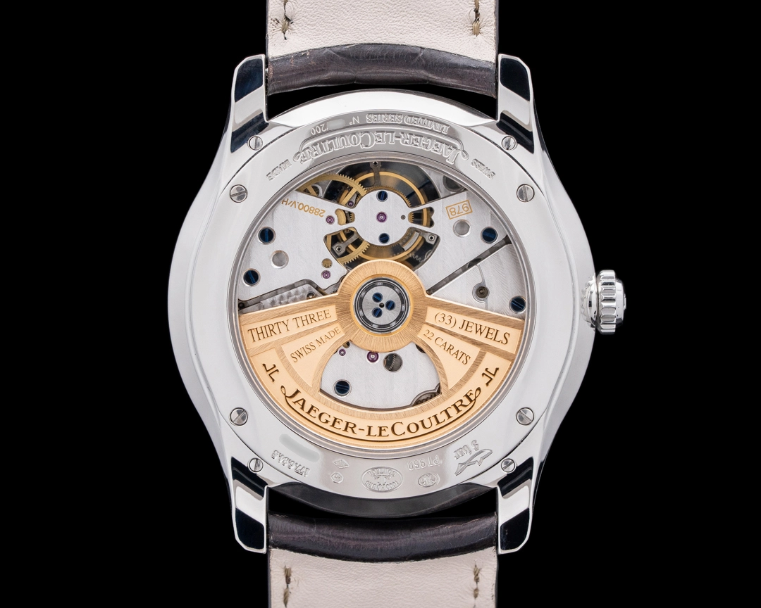 As we’ve mentioned previously, Jaeger-LeCoultre is often referred to as the “watchmaker’s watchmaker”, and this Q1666520 Master Grande Tradition Tourbillon demonstrates the technical mastery that makes the brand worthy of that sobriquet. Its 43mm platinum case houses the brand’s in-house automatic Calibre JLC 978, which features a tourbillon that’s prominently displayed at the six o’clock position on the dial and a date around the outer track. The soft, understated gray dial complements the platinum case in a delightful demonstration of tone-on-tone subtlety. This model was made in a limited edition of only 200 pieces, so this is a chance to own a very scarce piece of horological artistry.