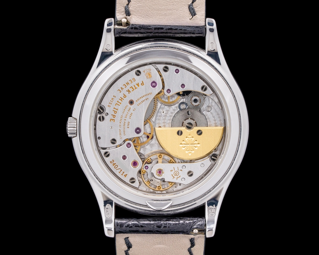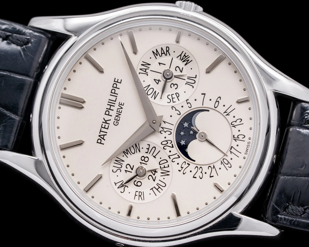 The quest for perfection is neverending, and Patek Philippe continues to refine it in every iteration of their perpetual calendars. This 5140G-001 is representative of that quest, as the successor of the brand’s iconic 3940, packing a lot of horological goodness into a slim package. It features the Patek Phillipe Caliber 240 Q, which is an automatic movement with a micro-rotor, which helps keep the profile slim. The perpetual calendar displays the time, day, date, month, leap year, moonphase, and a 24-hour indicator on a silver dial with applied white gold markers, and the exhibition case back will have you as mesmerized as if you were staring into the Mirror of Galadriel.