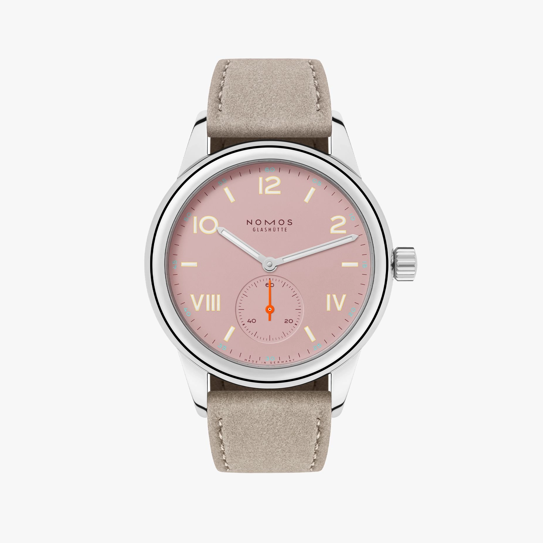 Nomos’s diverse lineup has always exemplified meticulous attention to detail, in-house movements, and a less-than-lofty price point—and the Club Campus embodies all of these values in what it describes on its website as “a watch without airs and graces.” Therefore, it’s a natural fit for an entire rainbow’s worth of hues, from an rosy pink to a dusky bluish-grey, plus peach, teal, lemon, and orange tones. There’s even a more intense deep pink, for those who want to lean a bit more adventurous.