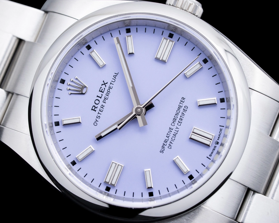 The natural rival to the Oyster Perpetual is Omega’s versatile Aqua Terra, which not only comes with 150 meters of water resistance and a co-axial movement but also a dizzying choice of colors, sizes, and strap options. Omega expanded this lineup in 2022 with the Aqua Terra Shades line, which feature Summer Blue, Shell Pink, Lavender, Bay Green, and Saffron dials, all beautifully rendered in sunburst patterns for extra depth. While they are on the smaller side, at 34 and 38mm, the colors are more than enough to catch one’s eye without being outlandish.
