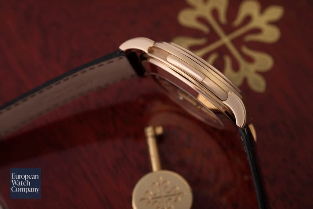 Due to the 3 subdials that accommodate the perpetual calendar functionality, one might mistake the watch for a chronograph from afar. This gives the 5074 a more stealth luxury, even in spite of the rose gold case. Most won't recognize either perpetual calendar function. And definitely won't notice the minute repeater button, hidden away on the side of the case.