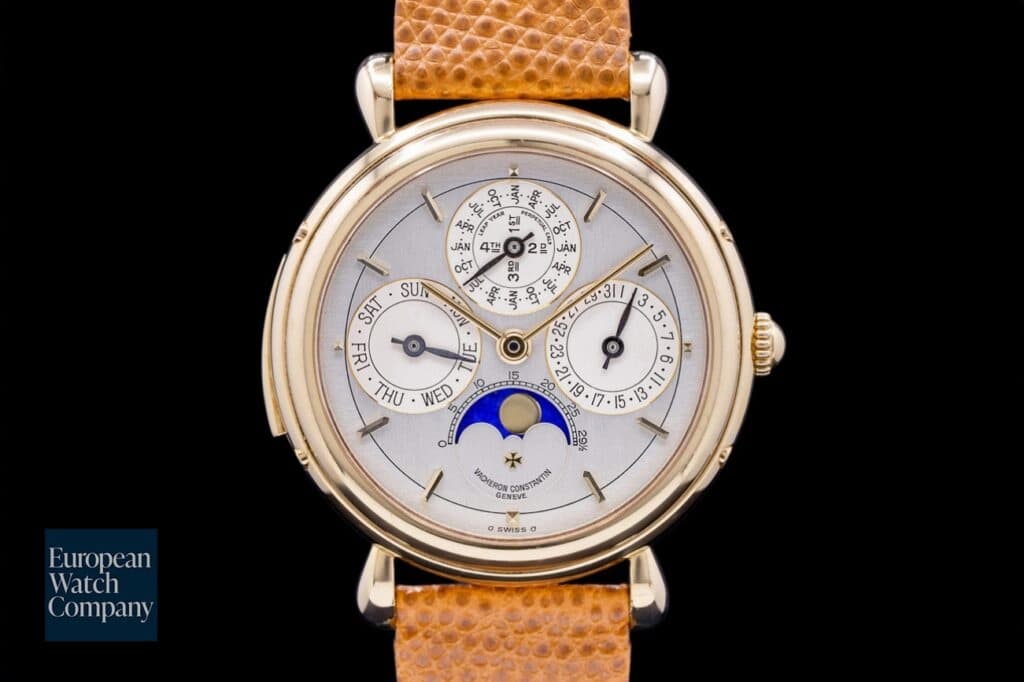 If you are looking for a watch with a perpetual calendar and minute repeater, and from a legacy brand, but won't cost you over half a million dollars, I would suggest the Vacheron Constantin Patrimony Minute Repeater Perpetual Calendar Ref. 30020/000J-4. Offered in yellow gold, this piece has an even more classic look than the Patek 5074R-012. Like the Patek, it has a white dial, but instead of Arabic numerals, it has stick indexes. And instead of 42mm, it is a much more restrained 37mm. The watch also runs on a manual winding as opposed to automatic winding movement. But for a quarter of the price of the 5074R-012, it is still a great option.