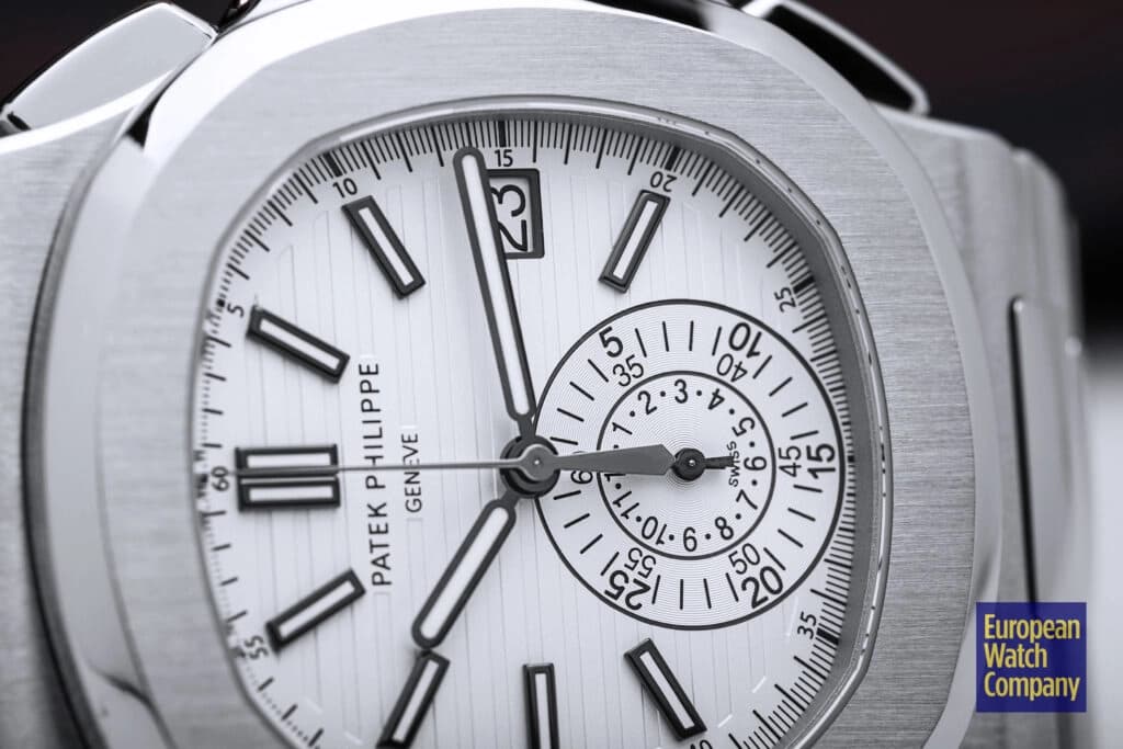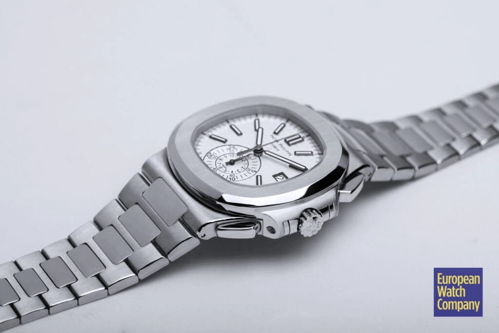 The 5980, which is the watch we have here, was launched in 2006 along with the now-famous 5711 and 5712. These three watches helped celebrate the Nautilus' 30th anniversary, and the 5980—which at the time only came with a black and blue colored dial—became the first Nautilus to have a chronograph complication. In 2012 Patek released the stainless steel variant you see here with the all-white dial and black indices and hands. This variant was only produced for two years and was discontinued in 2014, making it one of the rarest modern Nautilus variants. The watch is now only produced in two-tone steel and rose gold and solid rose gold, and neither of those models has a white dial. It's a shame that a watch this great was only produced for two years, but that kind of just makes me want it more.