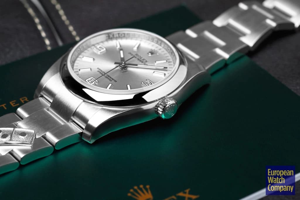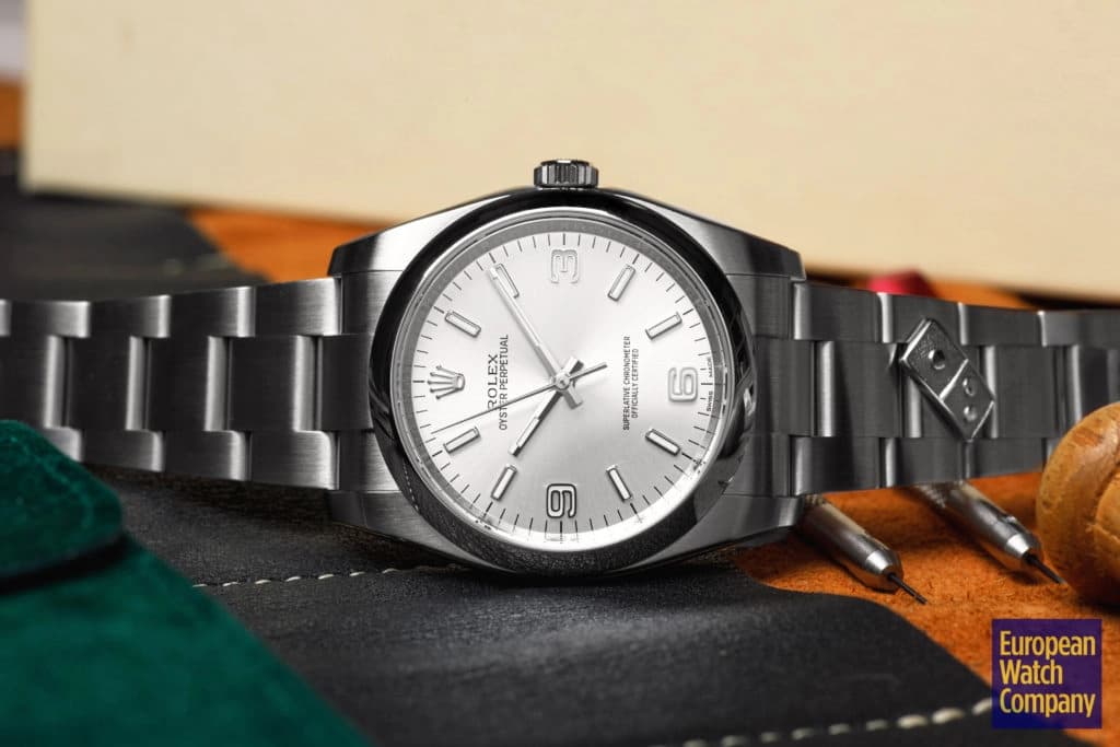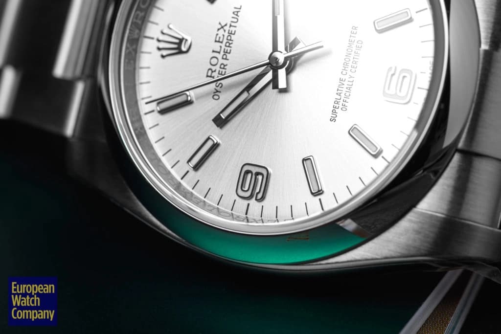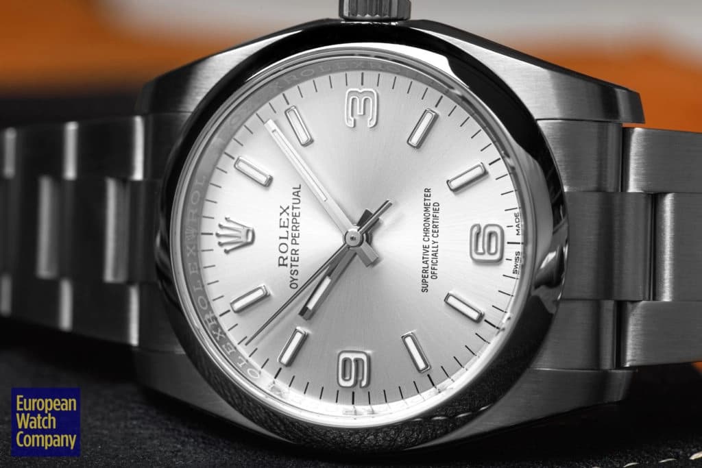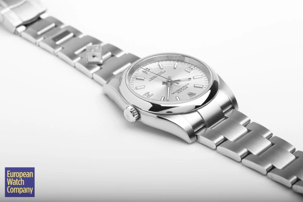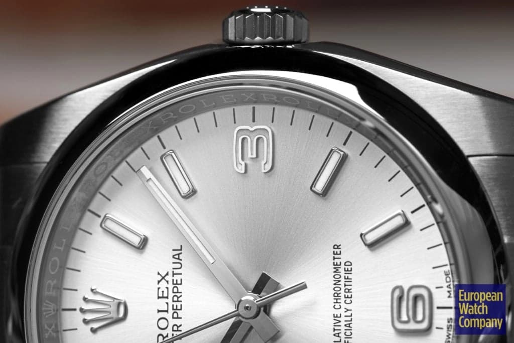 The 904L stainless steel case and bracelet are both in the Oyster style and are primarily brushed with just enough polished accents to keep the watch from being too casual. With its domed bezel and classic Oyster profile, the watch has a simple but timeless design. The case has a screw-down crown and is water-resistant to 100 meters. The modern case and Oyster bracelet will take anything you can throw at them and likely easily outlast you. While the Oyster Perpetual case design is excellent and its bracelet among the best on the market, they're standard issue for any Oyster Perpetual, and this Oyster Perpetual is anything but standard.