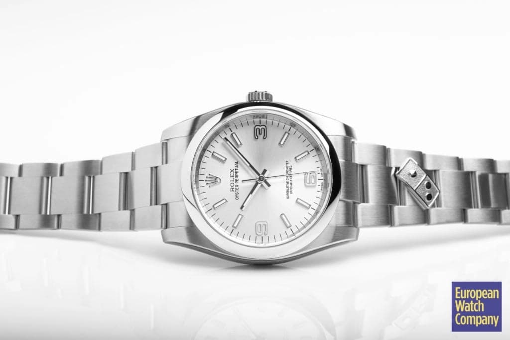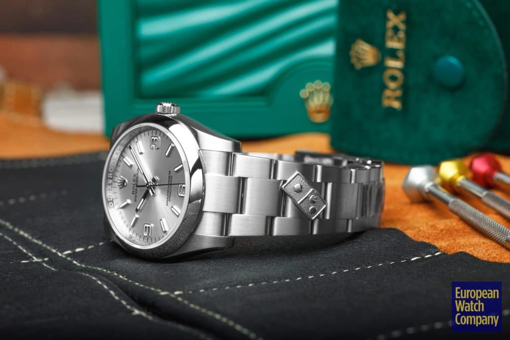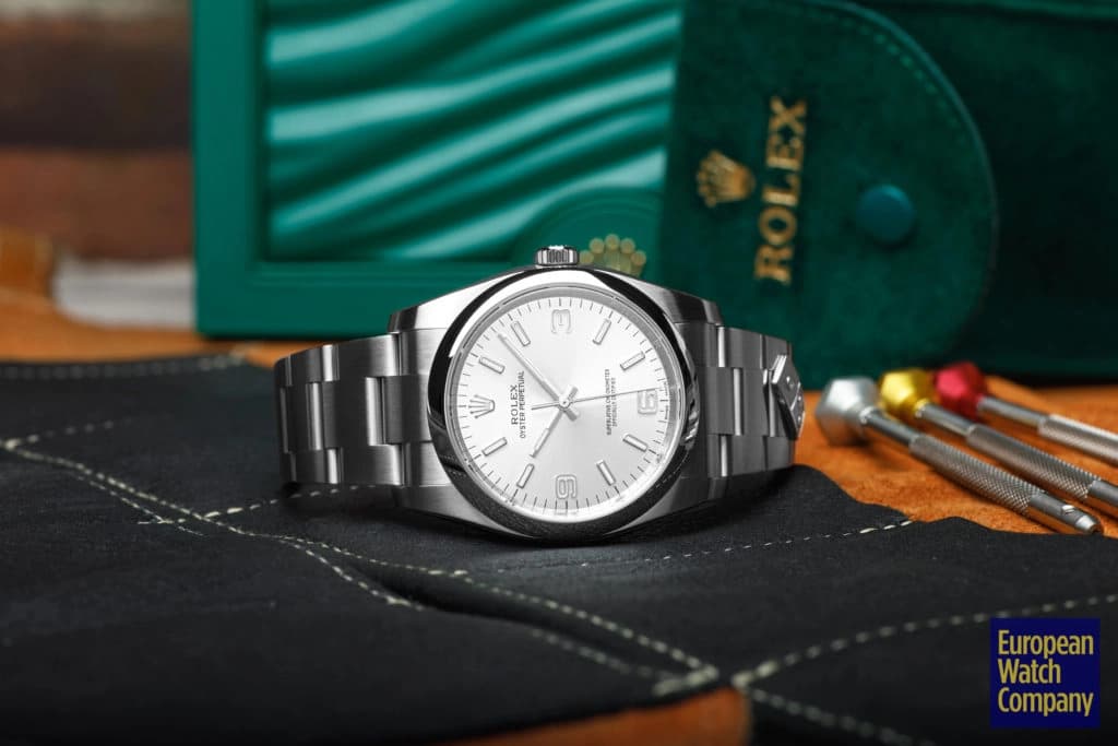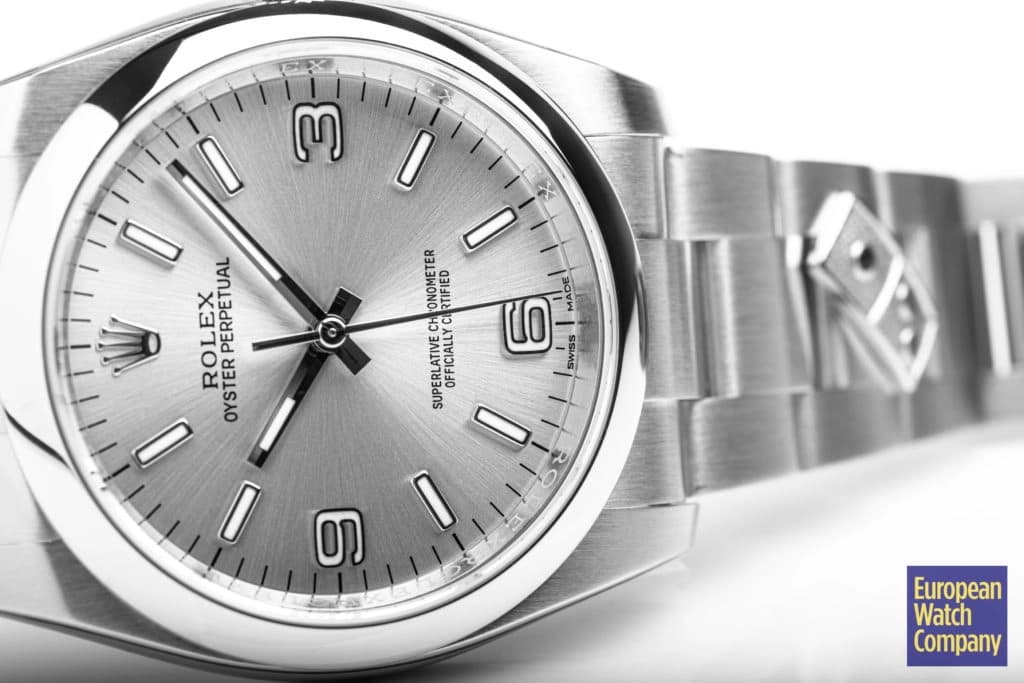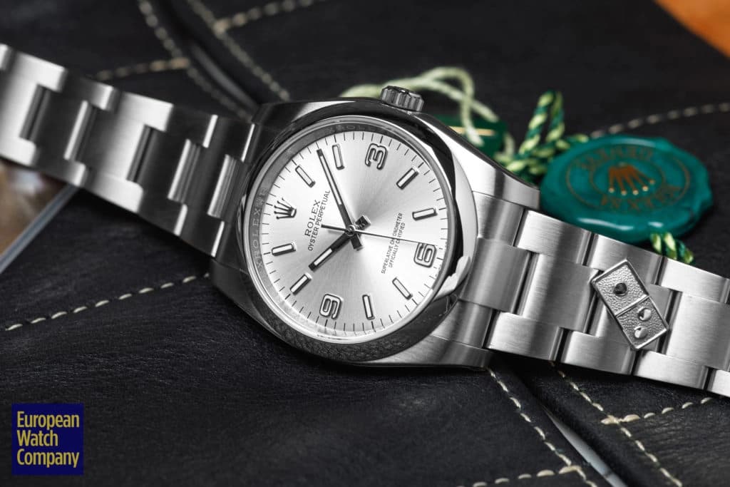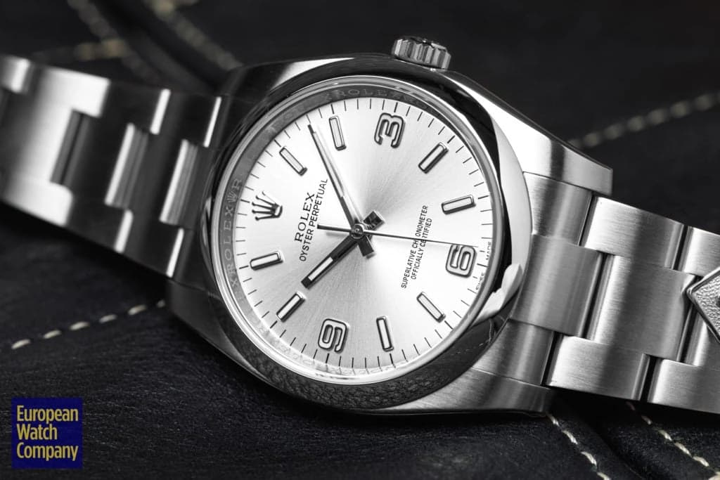 The 904L stainless steel case and bracelet are both in the Oyster style and are primarily brushed with just enough polished accents to keep the watch from being too casual. With its domed bezel and classic Oyster profile, the watch has a simple but timeless design. The case has a screw-down crown and is water-resistant to 100 meters. The modern case and Oyster bracelet will take anything you can throw at them and likely easily outlast you. While the Oyster Perpetual case design is excellent and its bracelet among the best on the market, they're standard issue for any Oyster Perpetual, and this Oyster Perpetual is anything but standard.