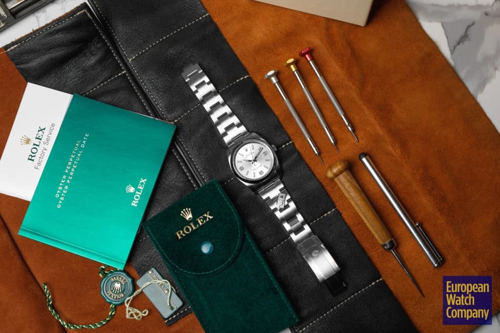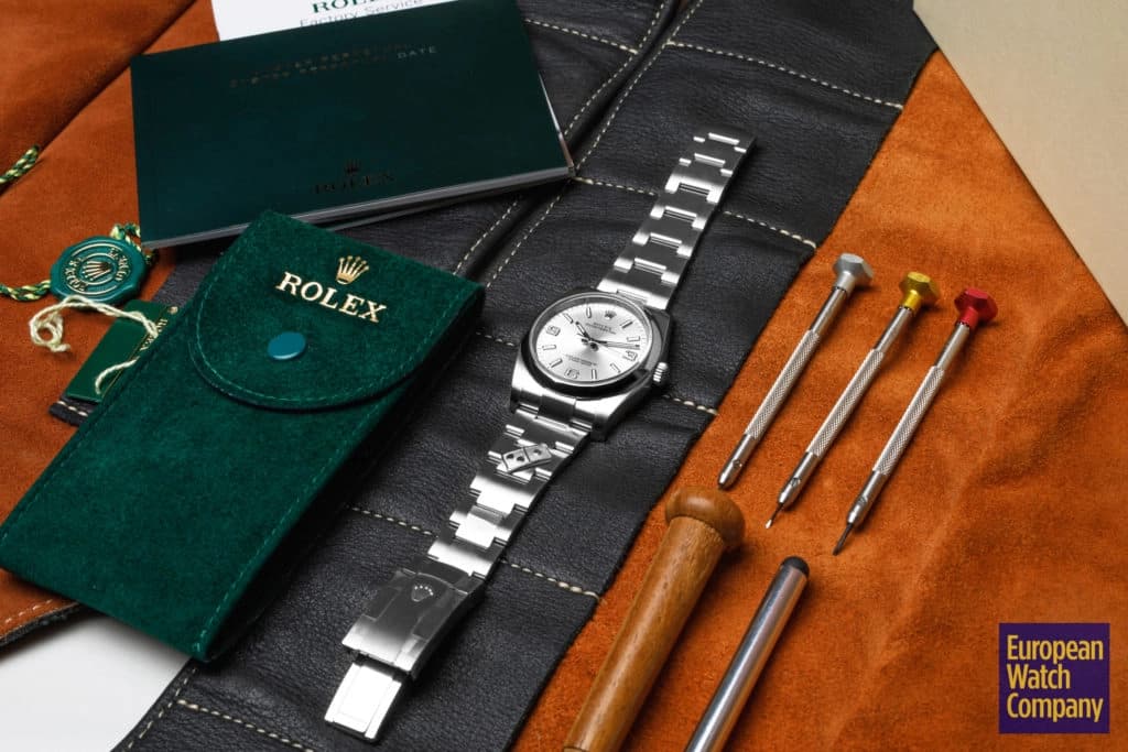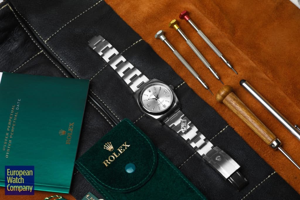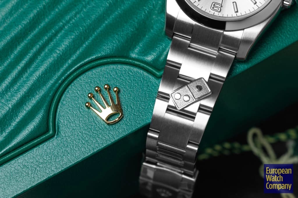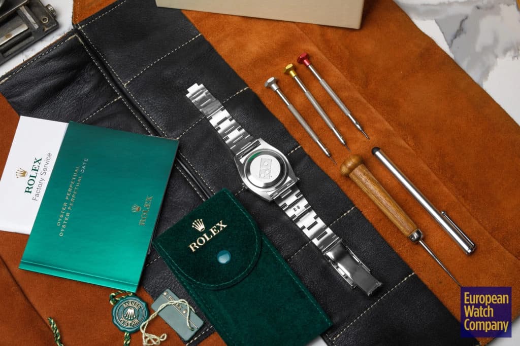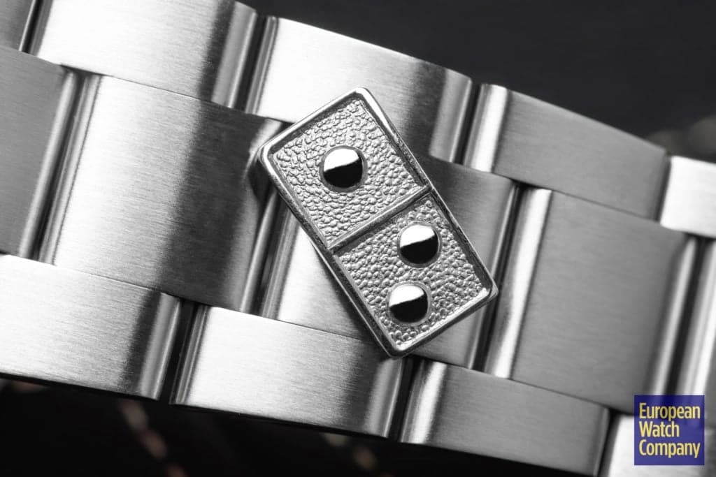 This partnership has been in place for over forty years and has spanned multiple Rolex models starting with the Air-King and now on the modern Oyster Perpetual—including the newest 2020 models. The customization has also changed a bit, starting out as a colored logo on the dial, then a black and white logo, and now an embossed steel logo on the bracelet, as well as a caseback engraving. These watches are often mistaken for odd aftermarket customizations, but they're not. These are Rolex factory-made modifications.