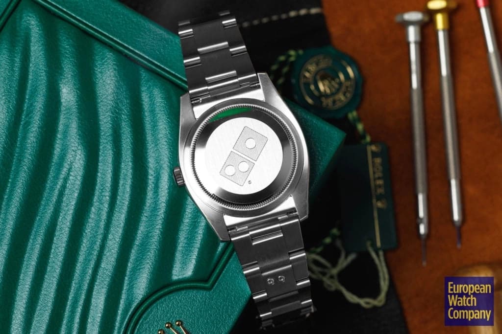 Co-branded Rolex watches have a special allure for watch collectors. They're a reminder of a time when Rolex was a little less conservative and a little less luxurious, and because the brand has essentially stopped participating in this type of co-branding, these pieces have become increasingly rare and collectible. But there is one brand whose partnership with the crown has endured, and it's probably not what you would expect. Despite stopping almost all other co-branding partnerships—including their most famous one with Tiffany & Co—Rolex continues a 40 plus year relationship with the Pizza titan, Domino's.