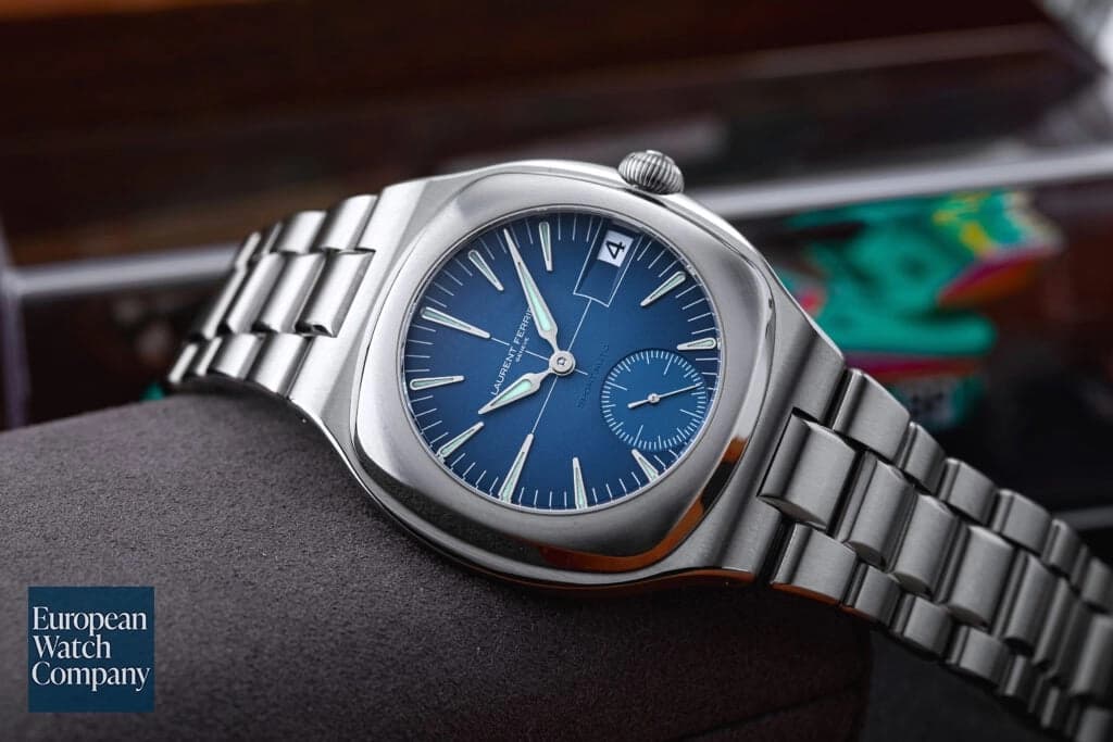 Inspired by Laurent Ferrier’s illustrious racing career (yes, in addition to a successful career with Patek Philippe and his own eponymous watch brand, Ferrier was also a top tier racer), the Sport Auto in titanium is one of the brand’s most distinctive designs. Featuring a cushion-style case and comfortable three-link bracelet, the highlights of this watch are the beautiful blue fume dial and the clean Swiss movement. Laurent Ferrier as a brand is perhaps best explained as intense simplicity. Everything on the timepiece is clean, crisp, and perfectly hand finished and executed, yet not over the top or ostentatious. Ferrier is stealth wealth personified in a wrist watch.