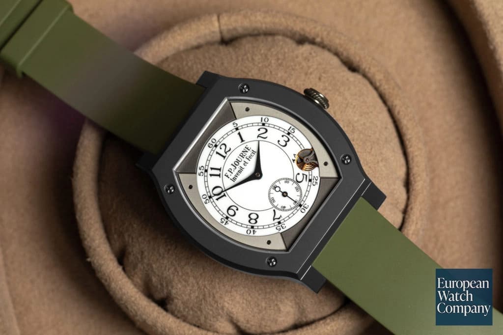When collectors learn that F.P. Journe makes a quartz watch, they tend to have the same reaction— why? Bewilderment aside, as one would expect, Journe's quartz watch is not just any quartz watch. Originally introduced as a solution for the wives of Journe’s clients, the Elegante features an advanced quartz mechanism that goes to sleep after roughly 30 minutes of inactivity. The piece remembers what time it “went to bed” and upon moving once more, the hands of the watch reset to the current time. This prolongs the battery life significantly and makes for an exciting spectacle when the watch resets itself each morning. Journe was clearly proud of his creation and when the model was released, it was one of the first quartz watches to feature an see-through exhibition sapphire crystal caseback. Executed in titanium, it makes for a fantastic everyday companion for any man or woman.