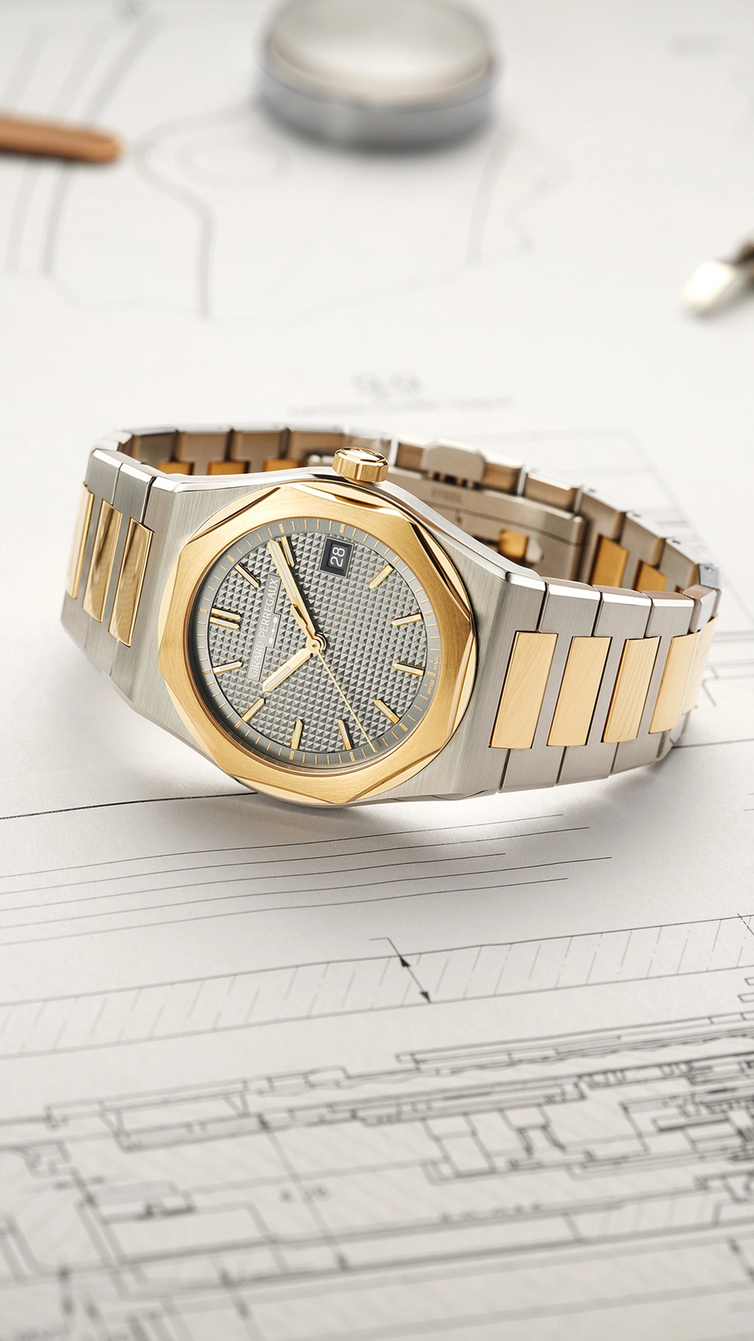 Girard-Perregaux celebrates 50 years of its instantly recognizable classic Laureato with the Laureato FIFTY. Limited to 200 pieces, this version features a two-tone steel and 3N yellow gold 39mm case, a subtly powerful gray dial with a Clous de Paris pattern that is accentuated by yellow gold indices, and an integrated bracelet with fine microadjustment features. Not only is this a celebration of an anniversary, it’s a debut of a new in-house movement, with the in-house automatic Calibre GP4800, decorated and visible through the exhibition case back.