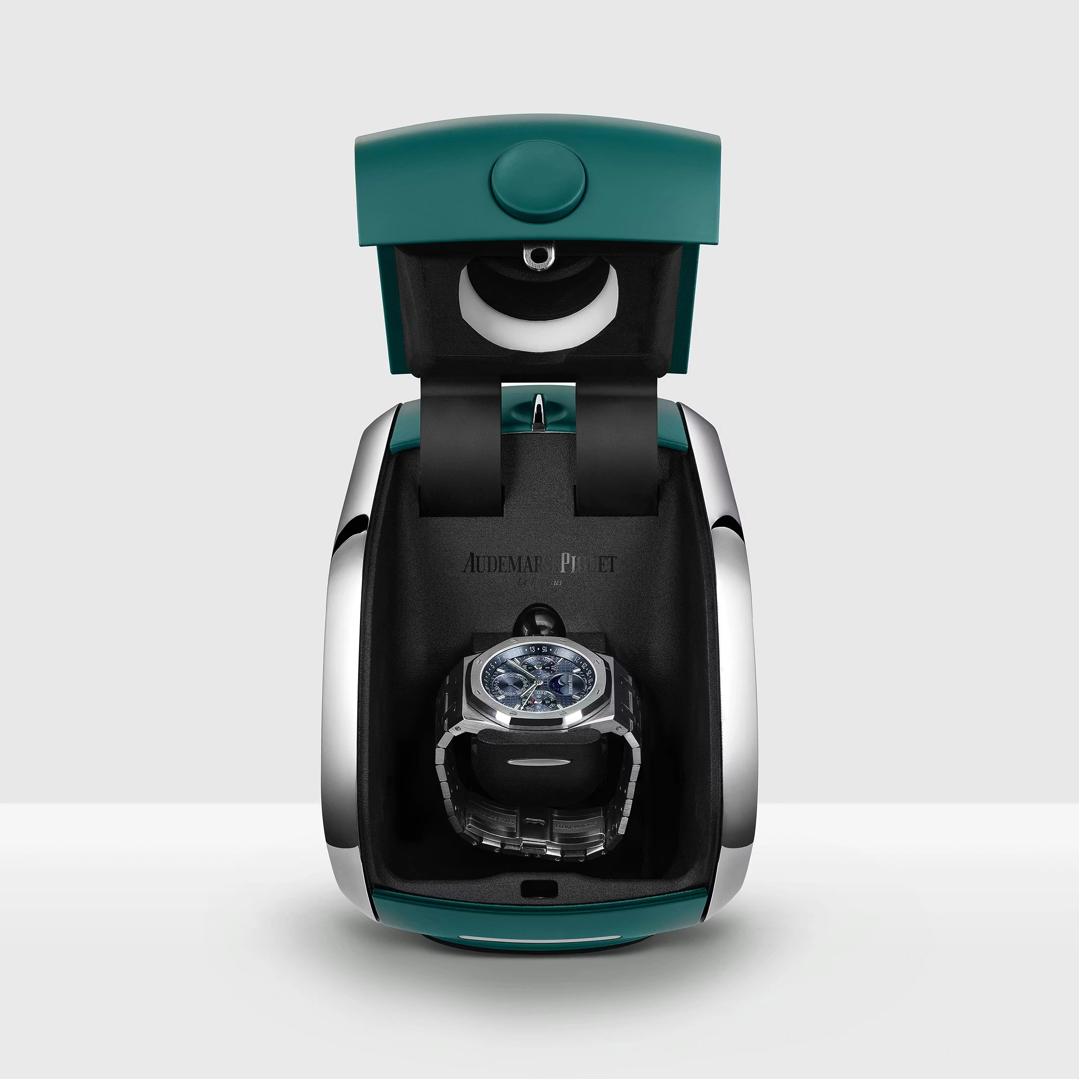 Most collectors have watch boxes, but none are like the new watch box announced by Audemars Piguet and Dubai Future Foundation. The prototype box not only winds the watch that’s inside it, but can also set the calendar and time on the Audemars Piguet Perpetual Calendar Royal Oak. It utilizes a camera in the box’s lid to provide visual data to an AI-assisted machine learning algorithm, which can pair with a phone app to set the watch using electromechanical components inside the box. Though it’s currently only a prototype, the features theoretically could allow future versions of the box to set other types of watches.
