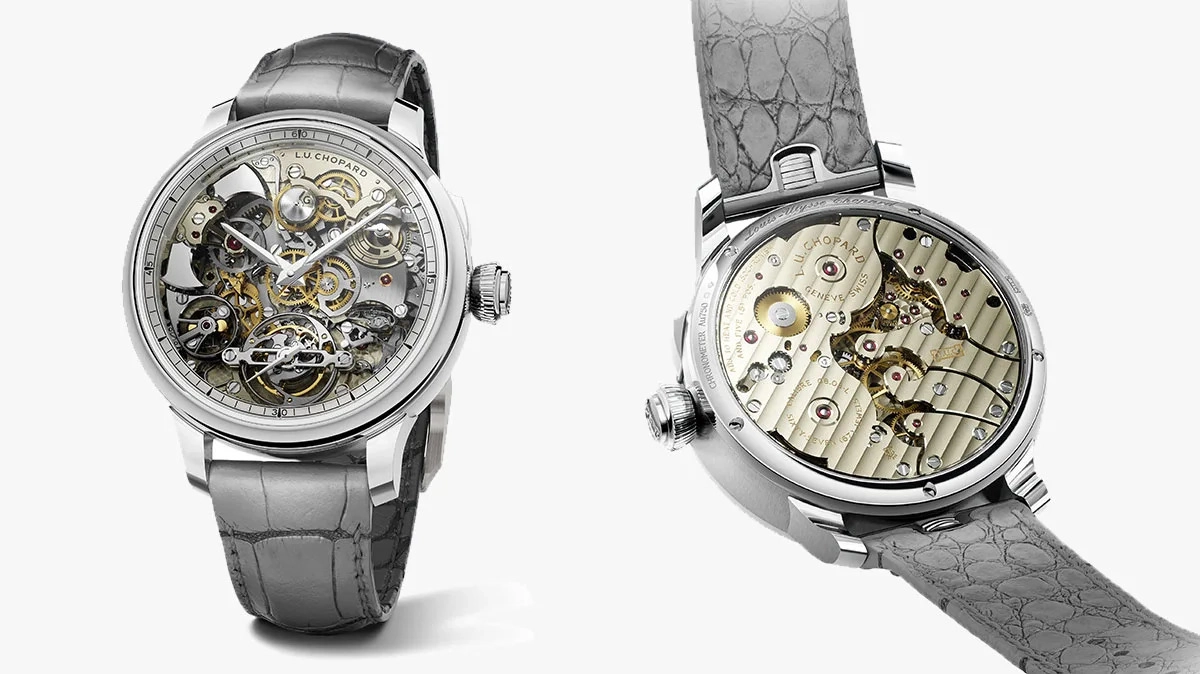 Chopard demonstrated its expertise in chiming complications with the release of its latest piece in the L.U.C. line: the L.U.C. Grand Strike. It features a 60-second tourbillon complication along with three different chiming complications - a minute repeater, and both a petite and grand sonnerie. There’s a switch on the case above the crown that allows the wearer to switch modes for automatic chiming on the hour with the petite sonnerie mode, hourly and quarterly chiming in grand sonnerie mode, or silenced mode for those times when you do not want your coworkers to glare at you while they’re trying to focus. The full minute repeater function can be activated using the pusher in the crown, no matter which mode it’s set to.