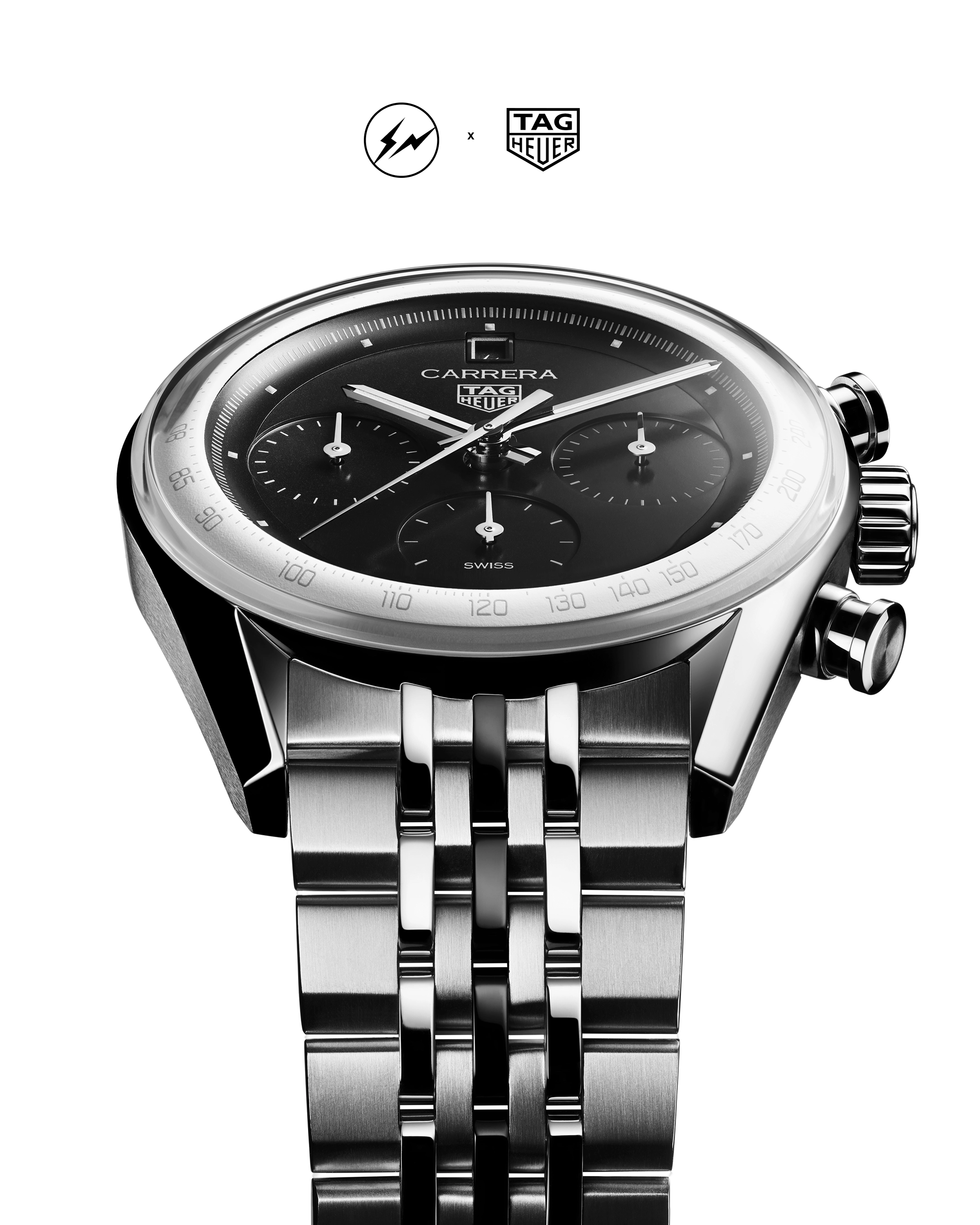 Continuing their creative partnership, TAG Heuer and fragment released their third collaboration piece with the TAG Heuer Carrera Chronograph x fragment Limited Edition. The edition combines a reimagining of TAG Heuer’s signature glassbox design through the interpretation of Hiroshi Fujiwara's keen eye. The timepiece is in a new 39mm case with a black dial with sharply contrasting white accents. There are subtle design cues incorporating signature elements from fragment, such as the fragment lightning bolt. This piece is not just about design - it’s also about performance, with its robust in-house TH20-00 movement with an 80-hour power reserve