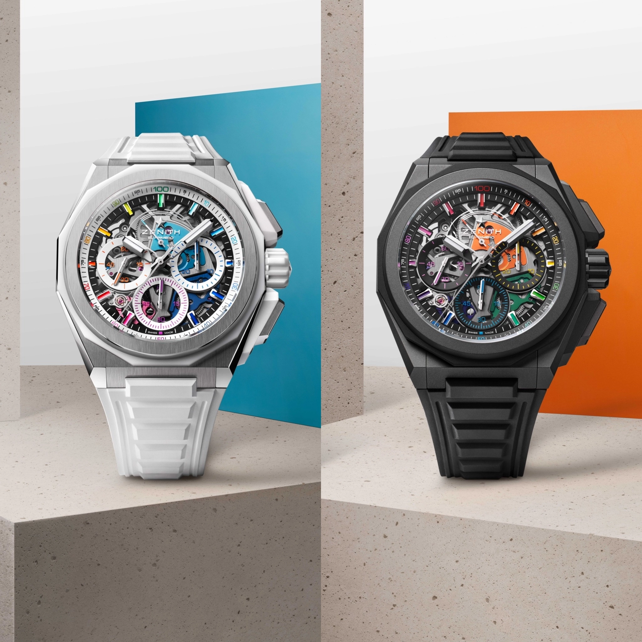 Never one to shy away from bold and colorful designs, Zenith introduced their latest DEFY Extreme Chroma Limited Editions in two different ceramic case options with distinctive rainbow accents. Both versions incorporate titanium and ceramic in the cases, and the dials are open-worked, revealing the chromatic rainbow display and allowing the wearer to peer directly into the in-house El Primero 9004 movement. Each piece also comes with three strap options, making either a versatile addition to any collection.