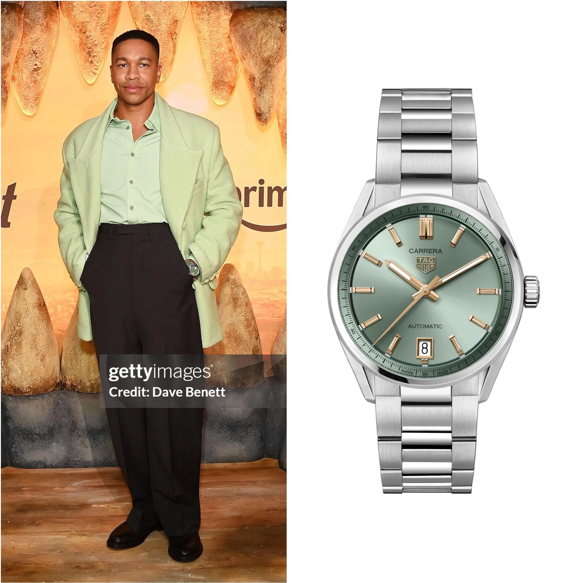 On the other side of the pond, actor Aaron Moten wore a TAG Heuer Carrera Date Green Dial to the London screening of the second season of ‘Fallout’. He stayed on theme, with green tones in his outfit to complement the watch.